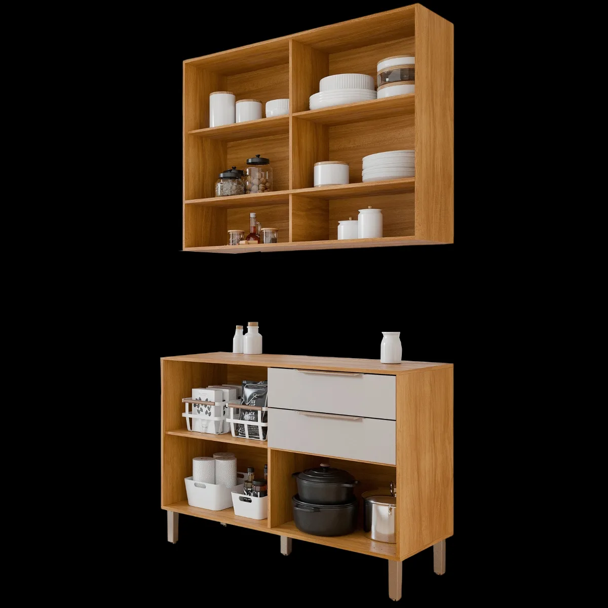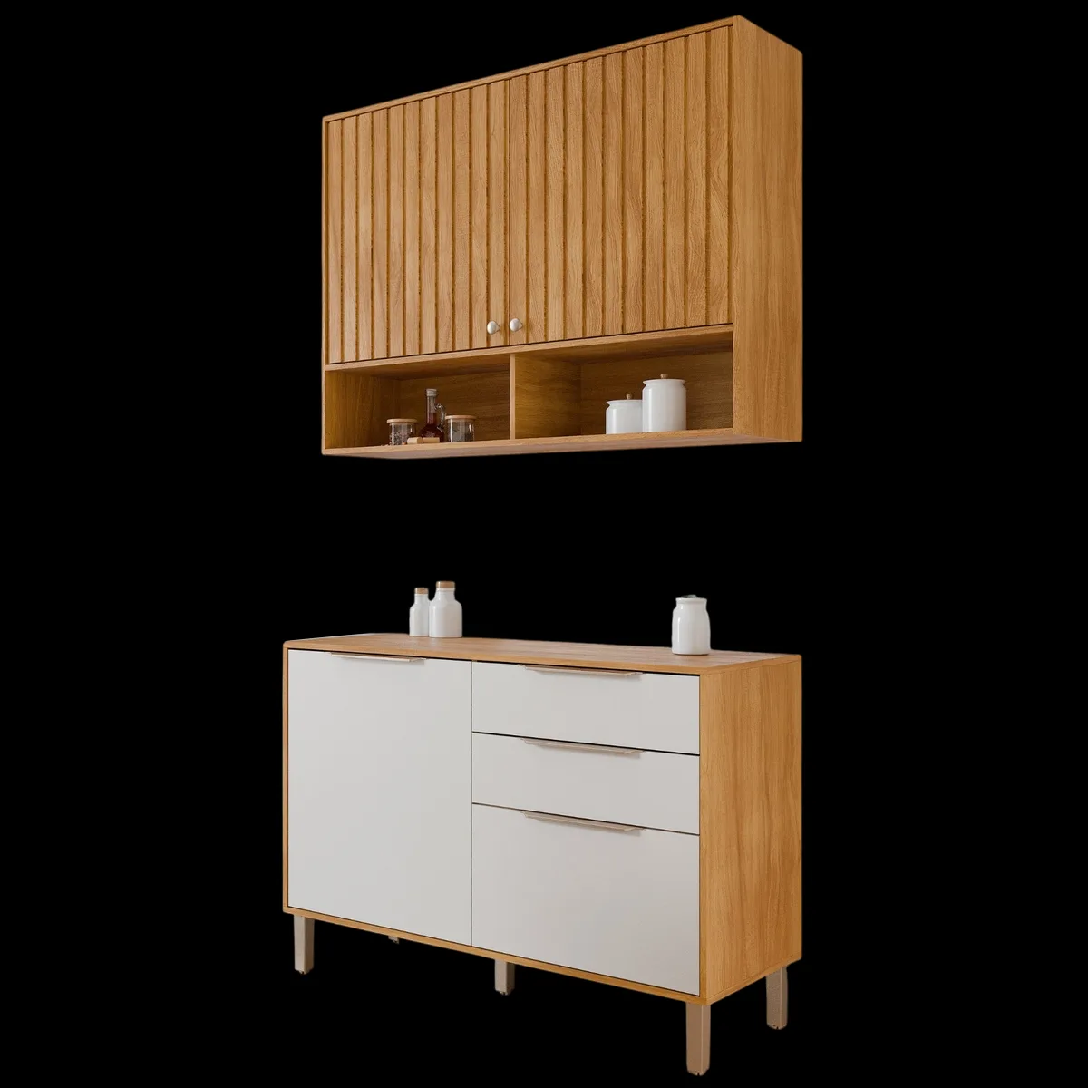 Armário Aéreo 2 Portas + Balcão Divina 1,20 m Cinamomo/Off White – MGM MÓVEIS
