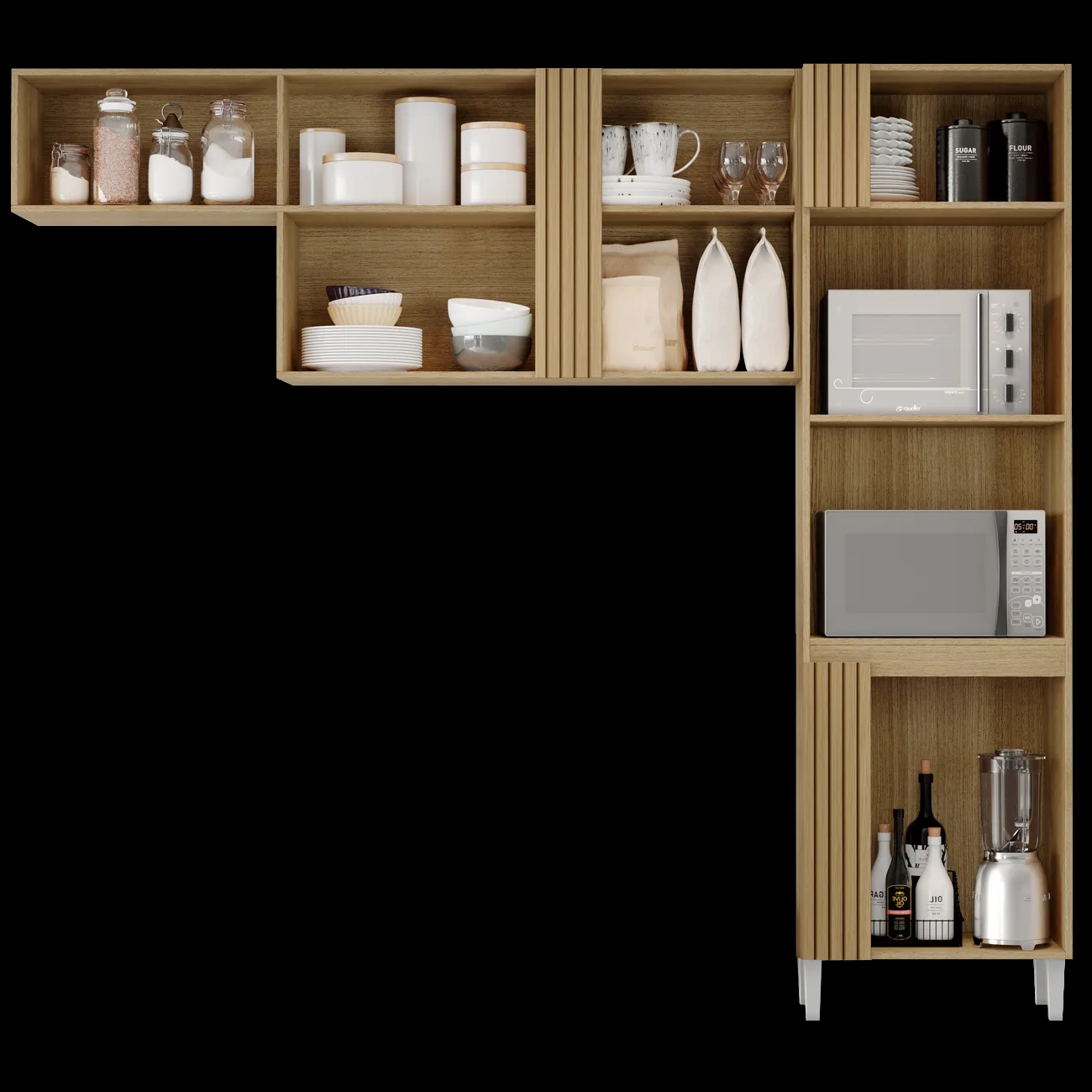 – Acabamento em verniz texturizado fosco e verniz brilho nas portas