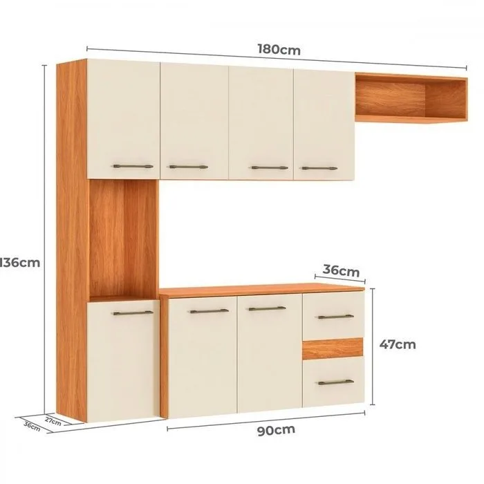 Cozinha Suspensa Mila CM16 1,80 m Cinamomo/Off White – FELLICCI