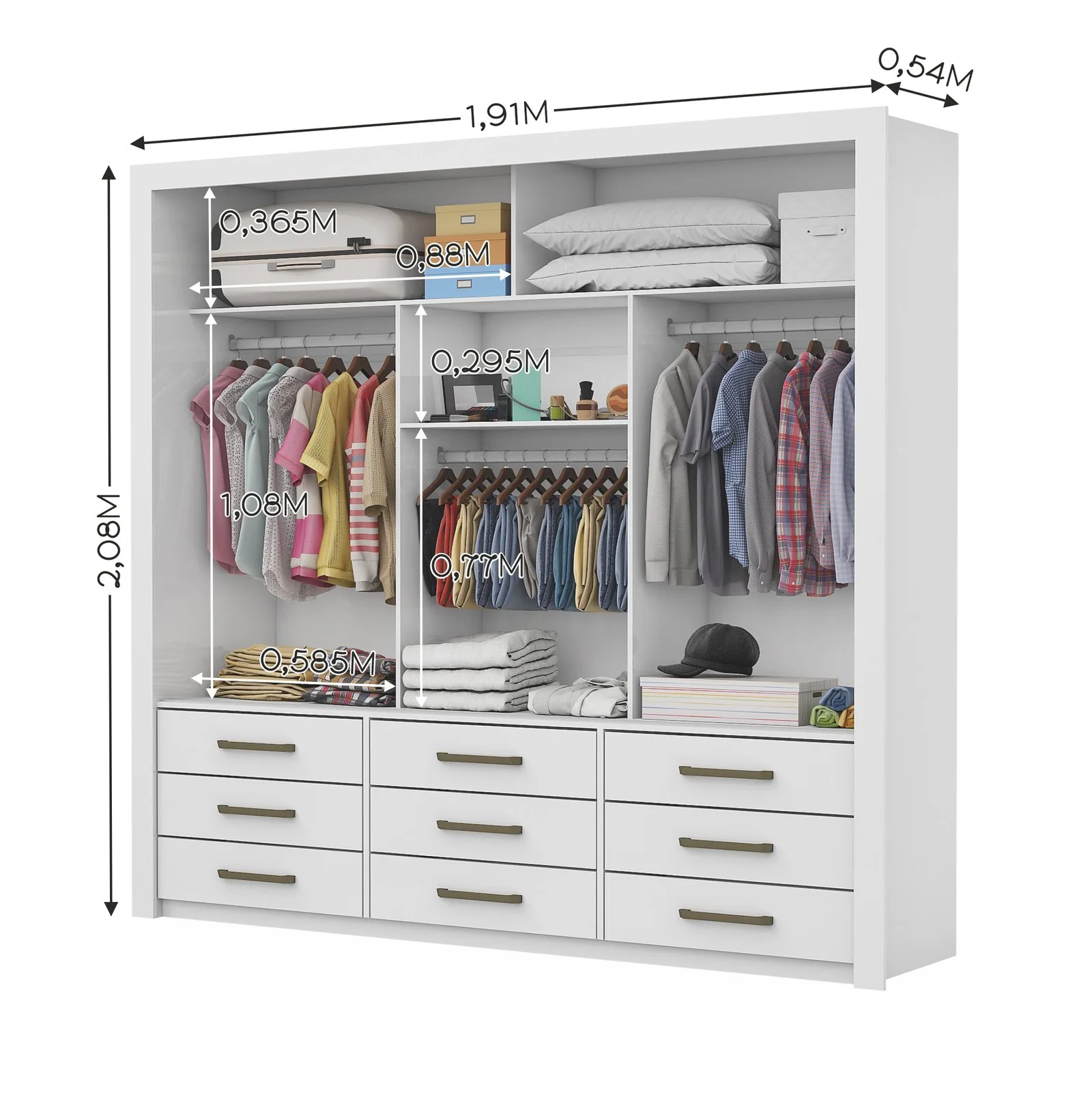 Guarda-Roupa 3 Portas Anjos 1,91 m Branco – CARIOCA MÓVEIS