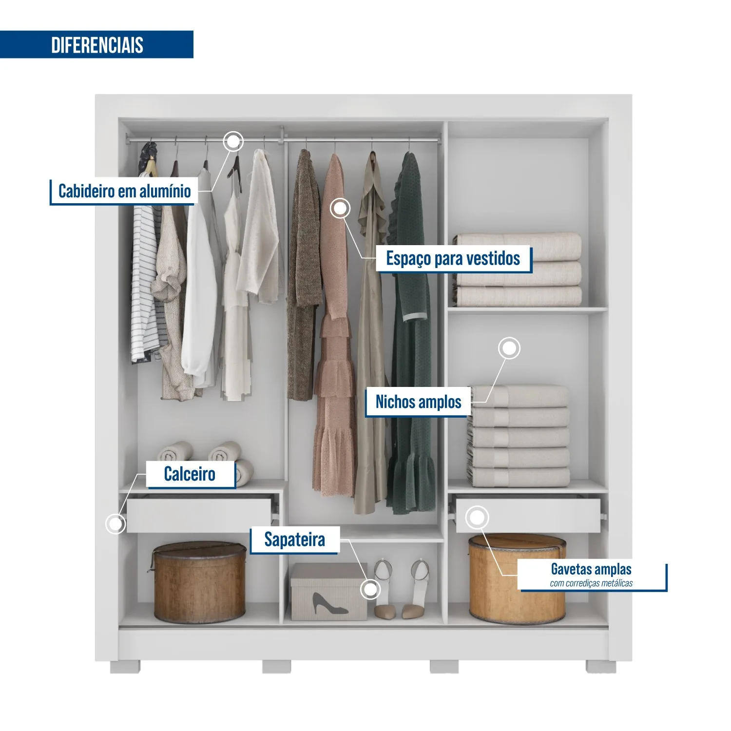 Guarda-Roupa 3 Portas Chile 1,914 m Branco – CAEMMUN MOVELARIA