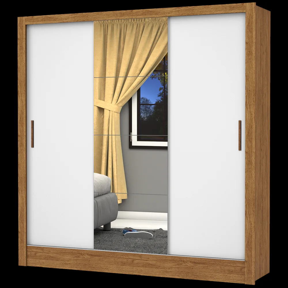 Guarda-Roupa 3 Portas Dubai/Santiago Plus (1 porta espelhada) 1,79 m Cinamomo/Branco – CARIOCA MÓVEIS