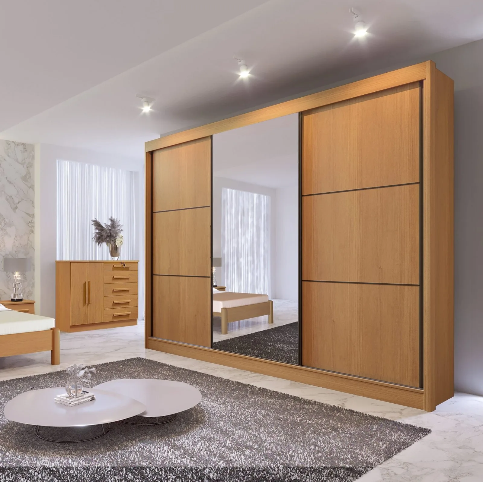 Guarda-Roupa 3 Portas Los Angeles 2,73 m Cinamomo/Off White/Cinamomo – D’DORO MÓVEIS