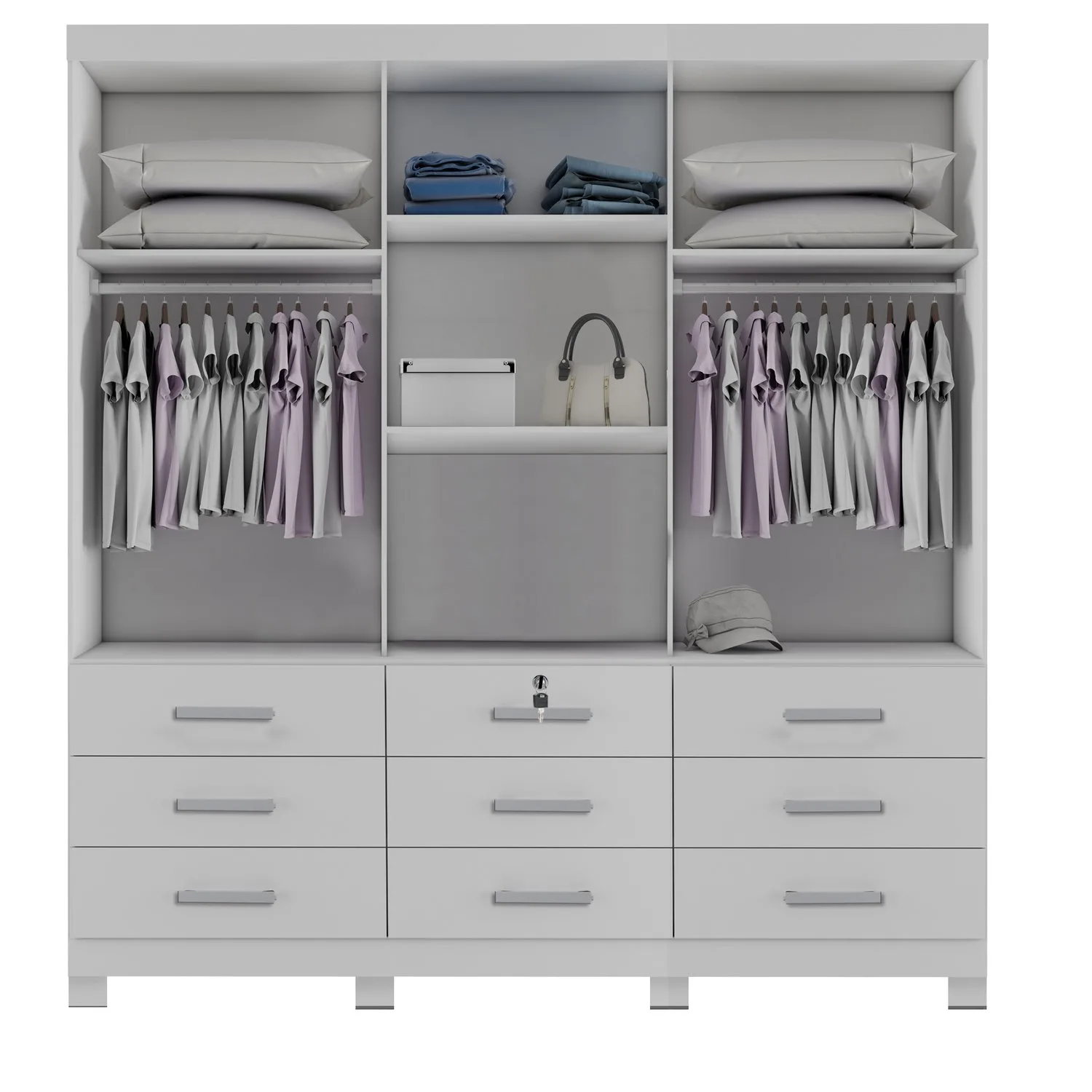 Guarda-Roupa 3 Portas(Com Pés)Athenas 1,80 m Branco – BIANCHI