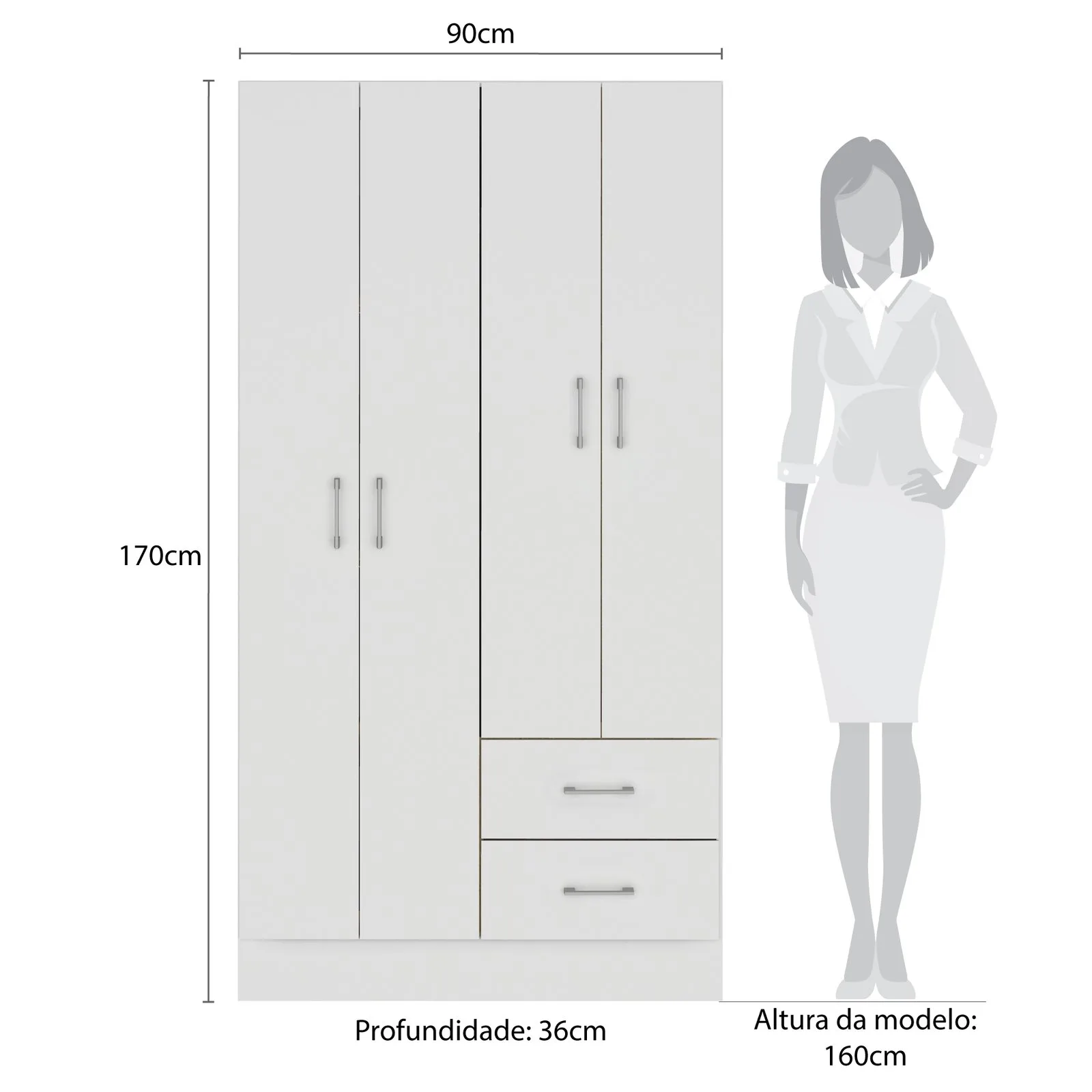 Guarda-Roupa 4 Portas Panamá 4002 0,90 m Branco – FELLICCI