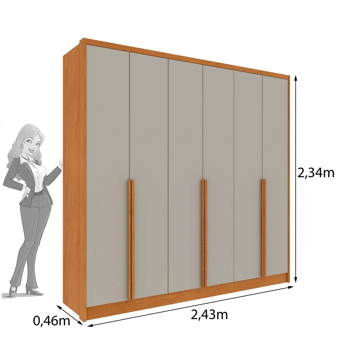 Guarda-Roupa 6 Portas Fortuna/Riqueza 2,43 m Cinamomo/Off White – TCIL