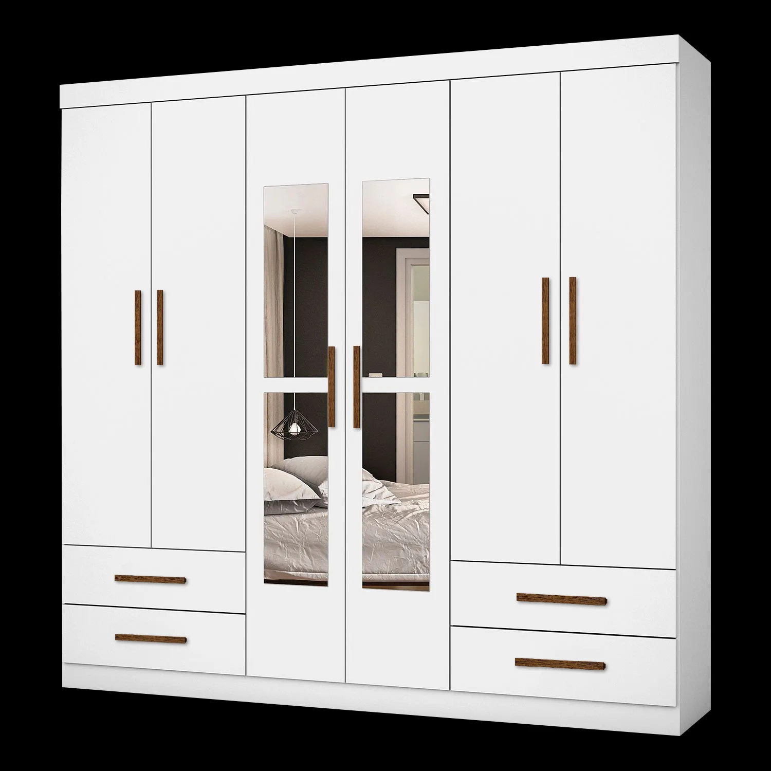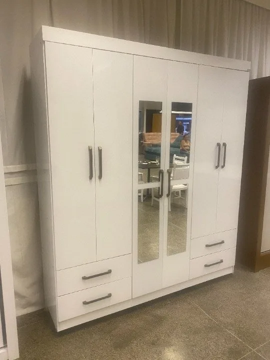 Guarda-Roupa 6 Portas Hércules(Com espelho)1,77 m Branco – CARIOCA MÓVEIS