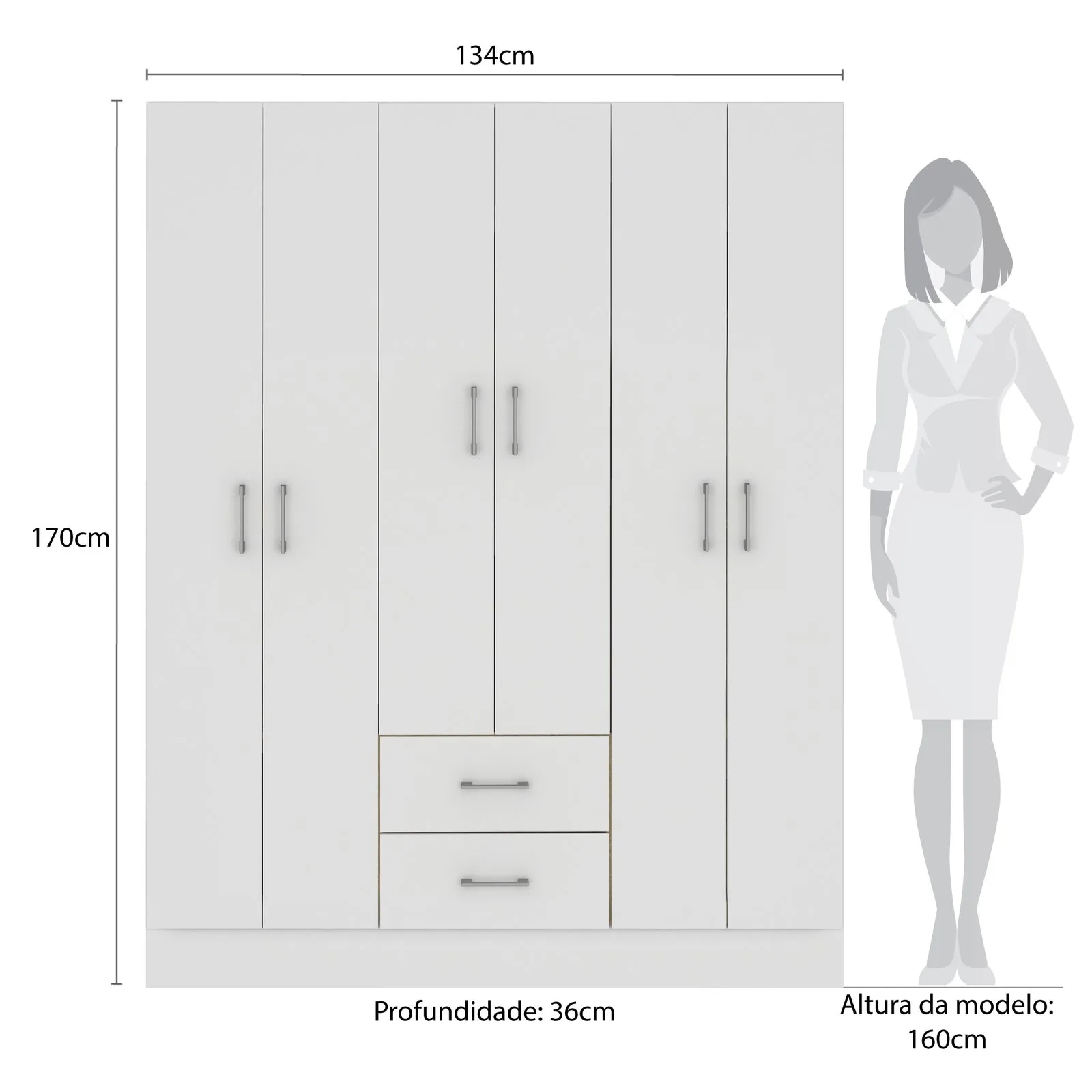 Guarda-Roupa 6 Portas Jamaica 6002 1,34 m Branco – FELLICCI