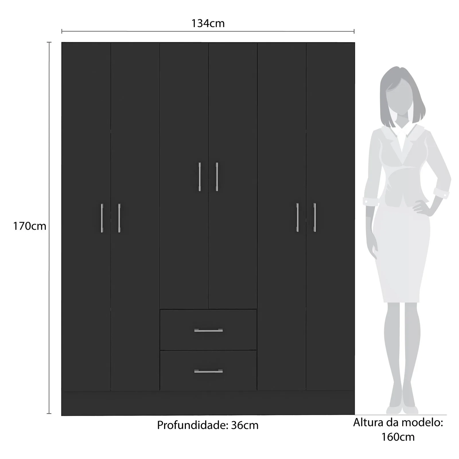 Guarda-Roupa 6 Portas Jamaica 6002 1,34 m Preto – FELLICCI