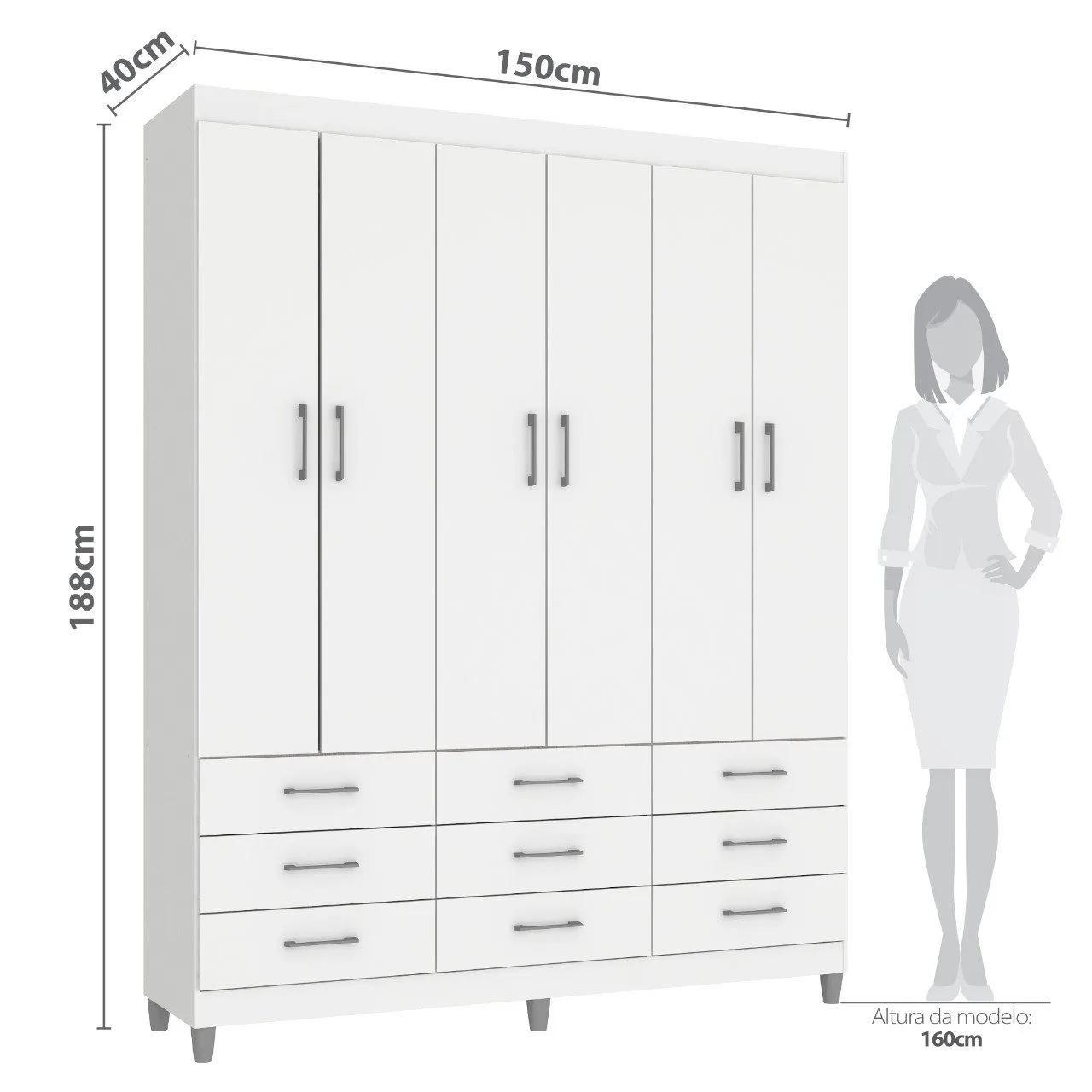 Guarda-Roupa 6 Portas Paraty 3690 1,50 m Branco – FELLICCI