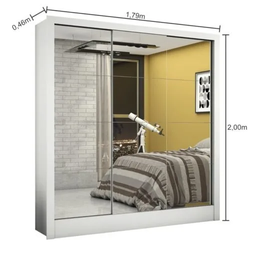 Guarda-Roupa Dubai/Santiago Premium(3 Portas espelhadas) 1,79 m Branco – CARIOCA MÓVEIS