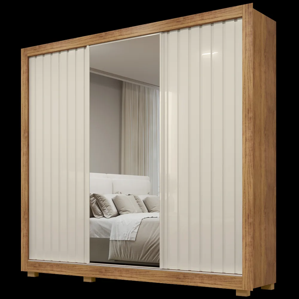 – Três portas deslizantes, sendo uma com acabamento em espelho infinito