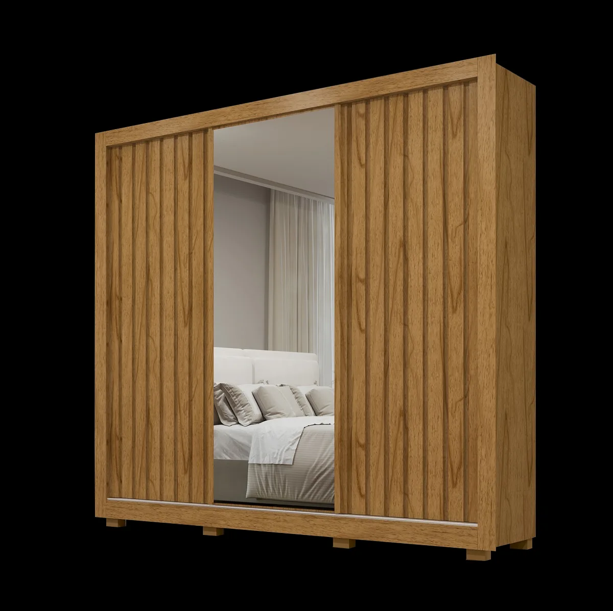 – Três portas deslizantes, sendo uma com acabamento em espelho infinito