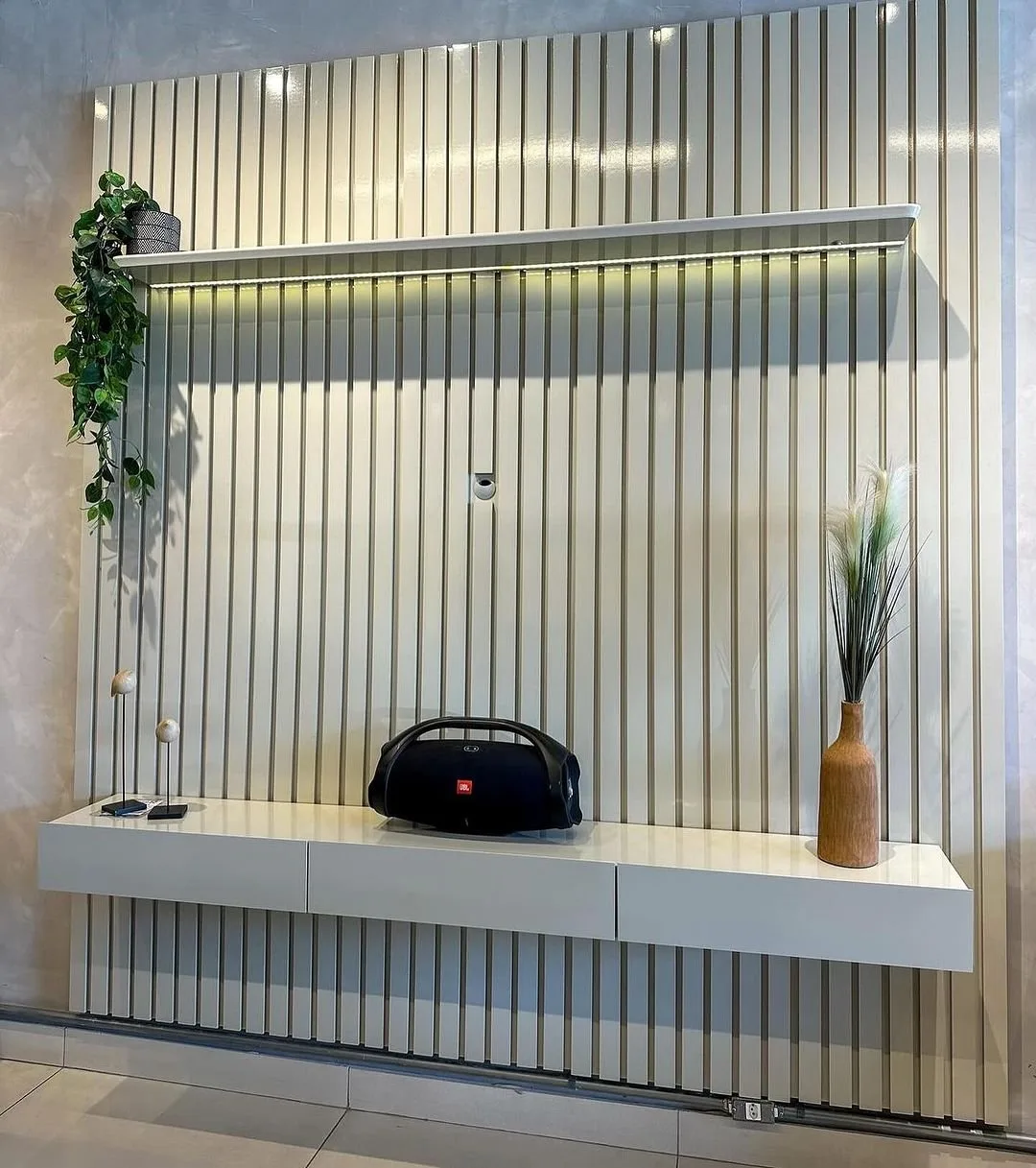 Home até 85″ Nobre Ripado (Com Nicho) Off White – GELIUS