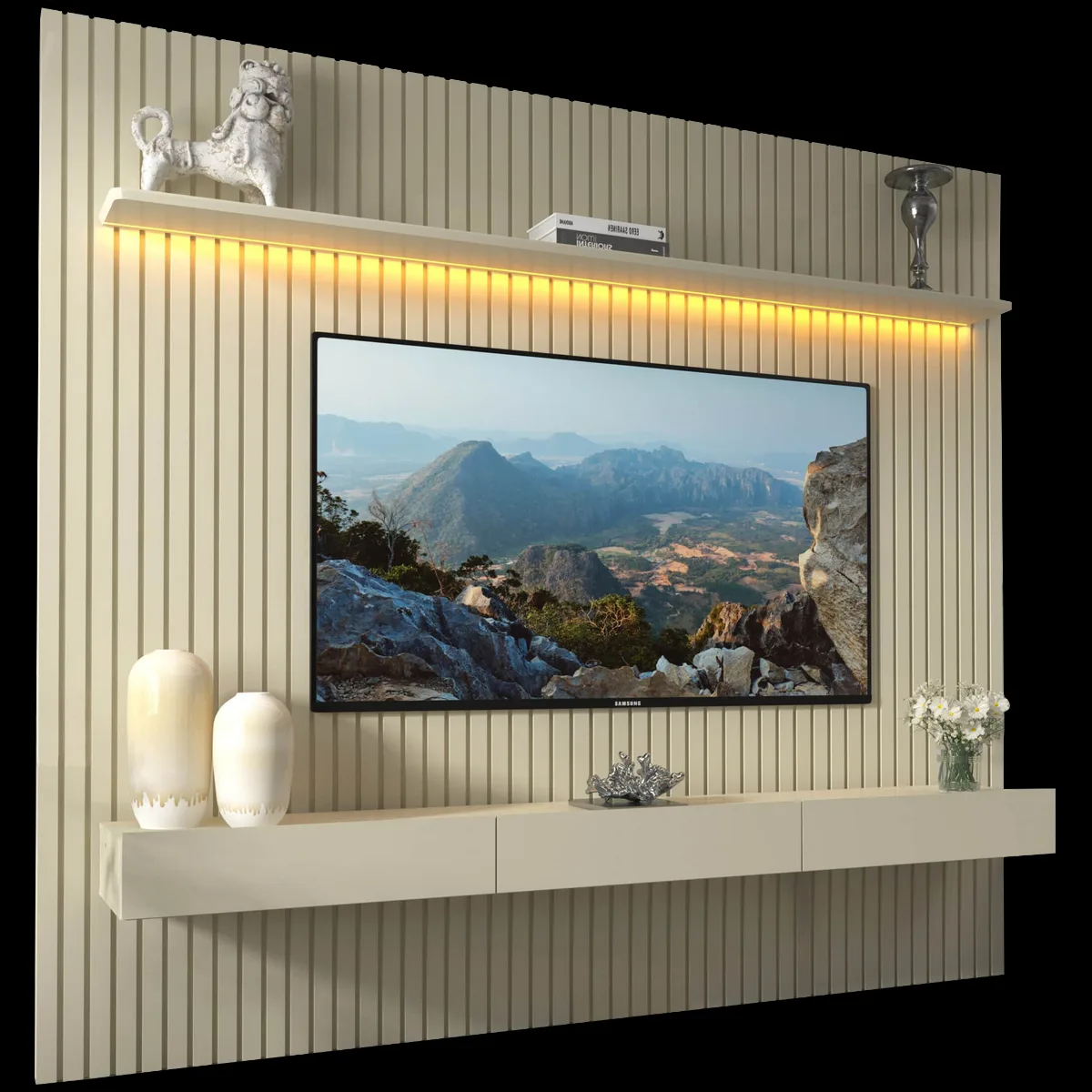 Home até 85″ Nobre Ripado 230(Com Nicho) Off White – GELIUS