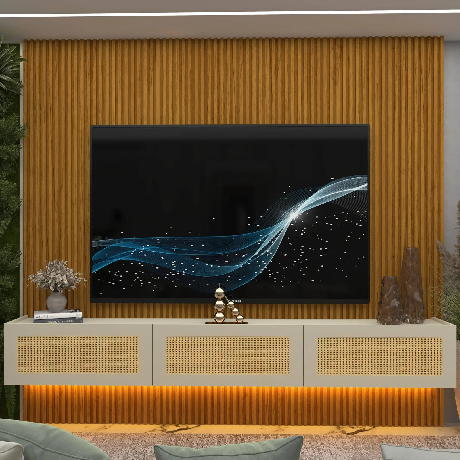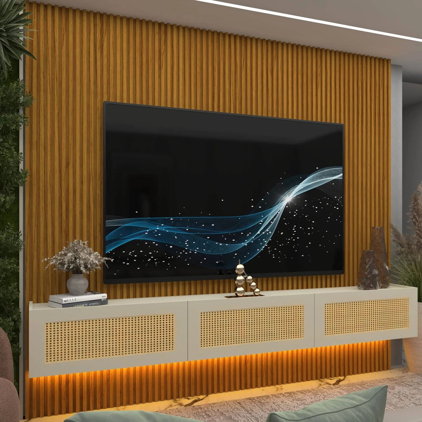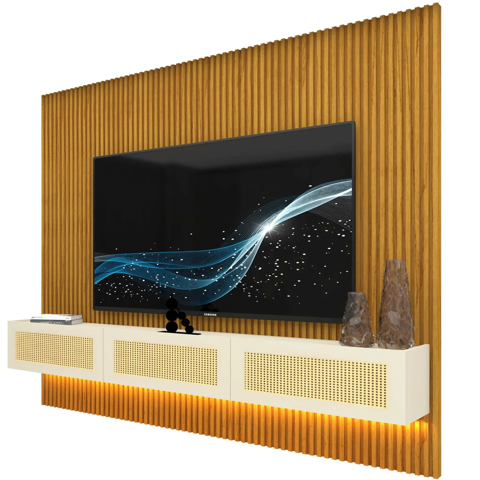 Home Suspenso até 85″ Supremo Ripado 218 Naturale com Nicho Native Off White – GELIUS