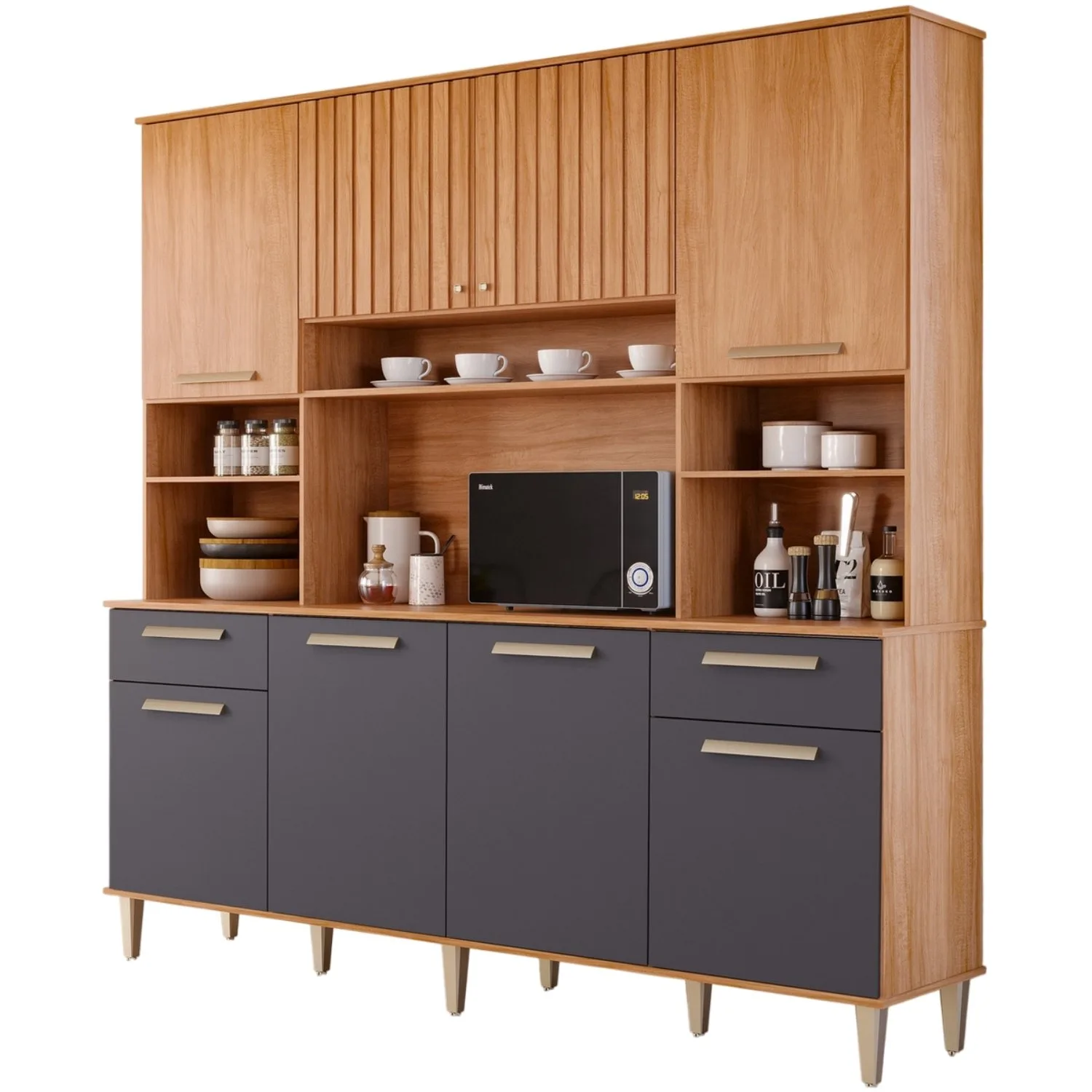 Kit Cozinha 8 portas Lívia 2,00 m Cinamomo/Titanium – MGM MÓVEIS