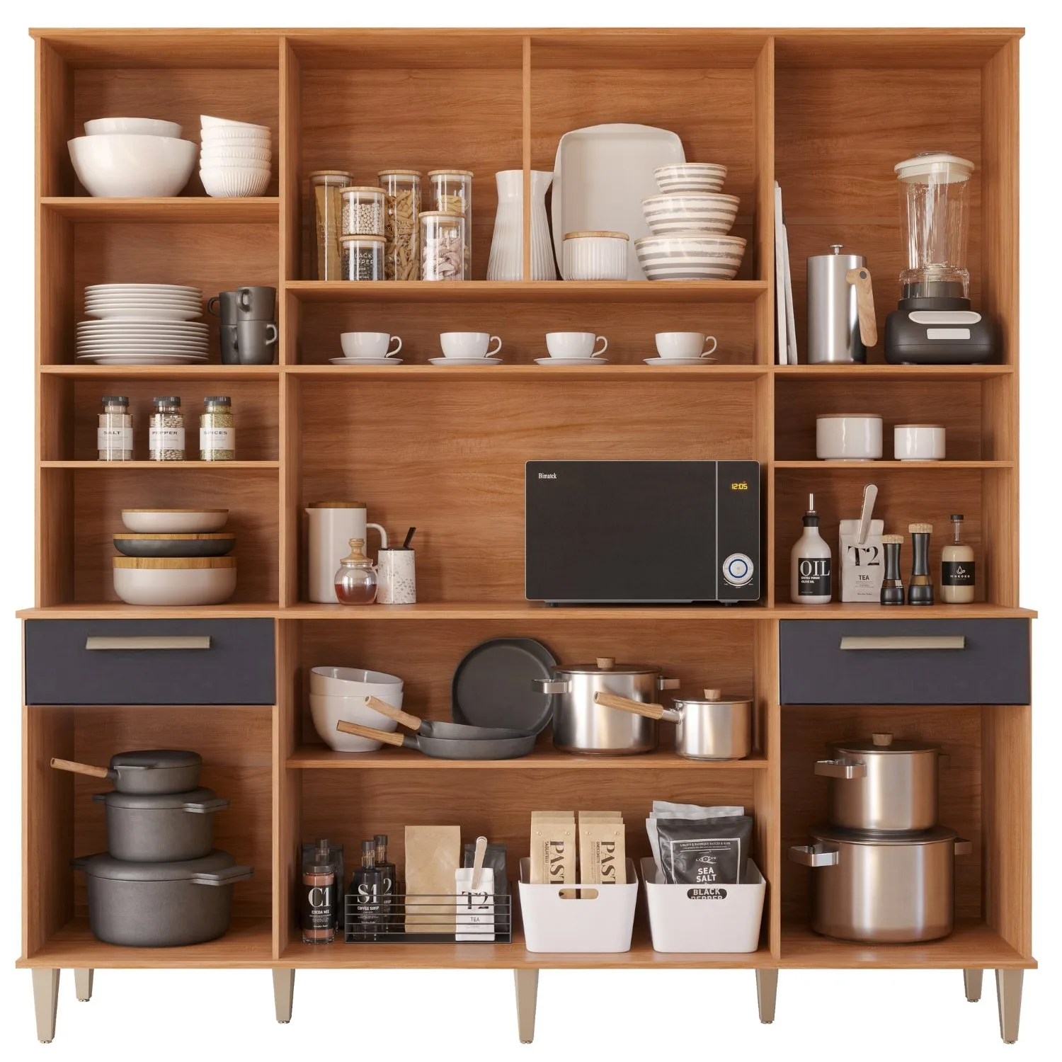 – Duas gavetas com corrediças telescópicas e puxadores em ABS na cor gold