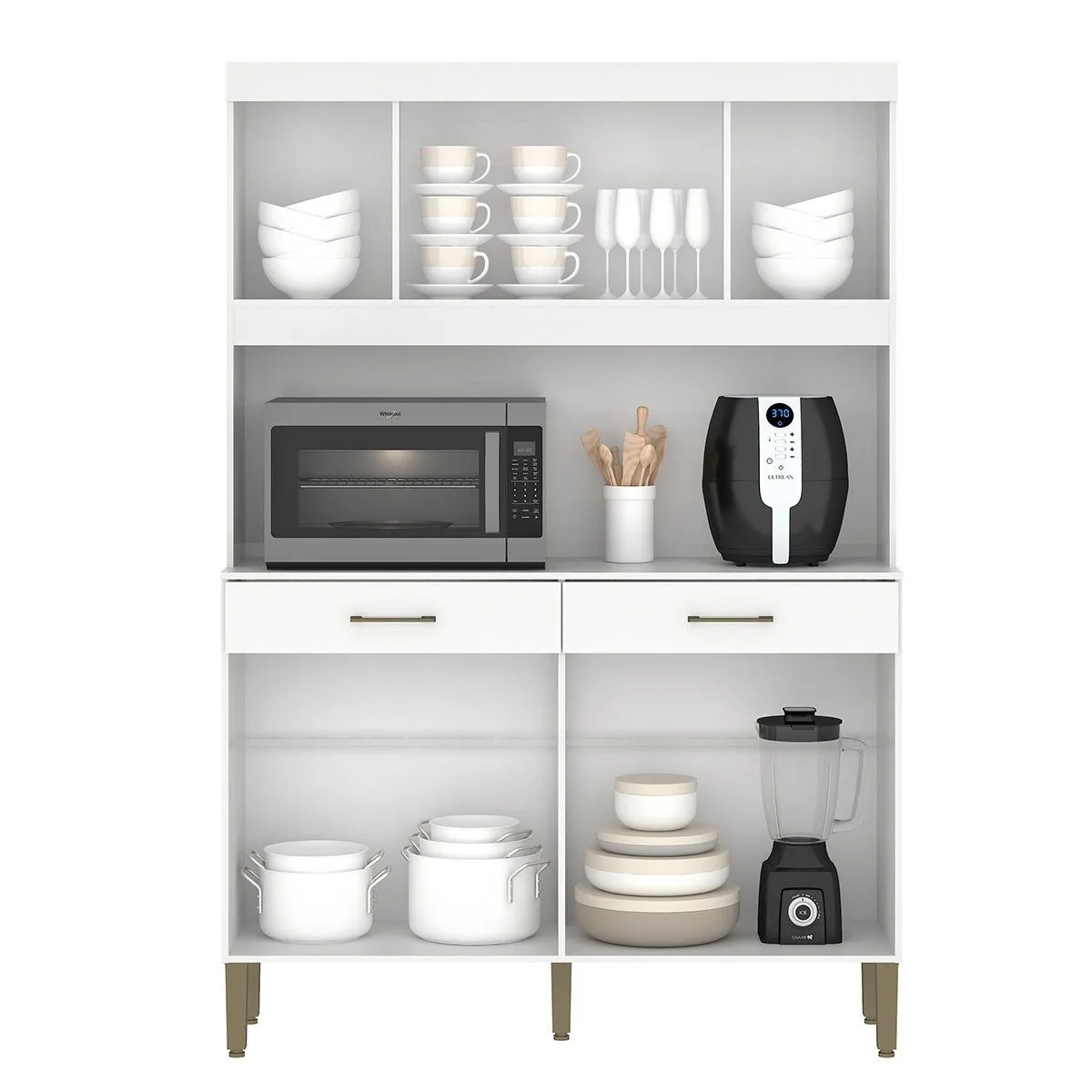 – Duas gavetas com corrediças telescópicas slim 35 cm