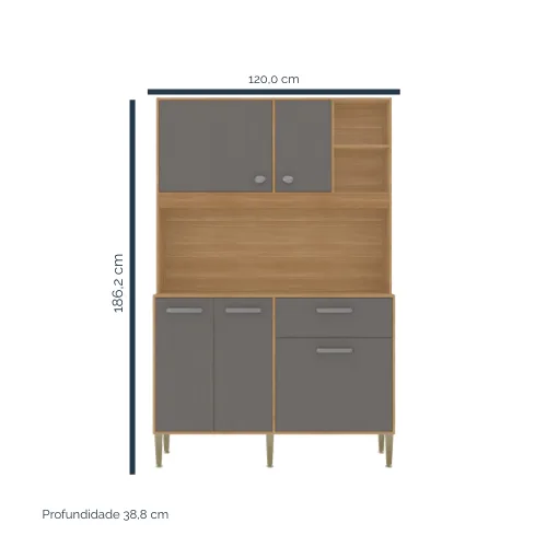 Kit Cozinha Liv 1,20 m Freijó/Gris – KIT’S PARANÁ