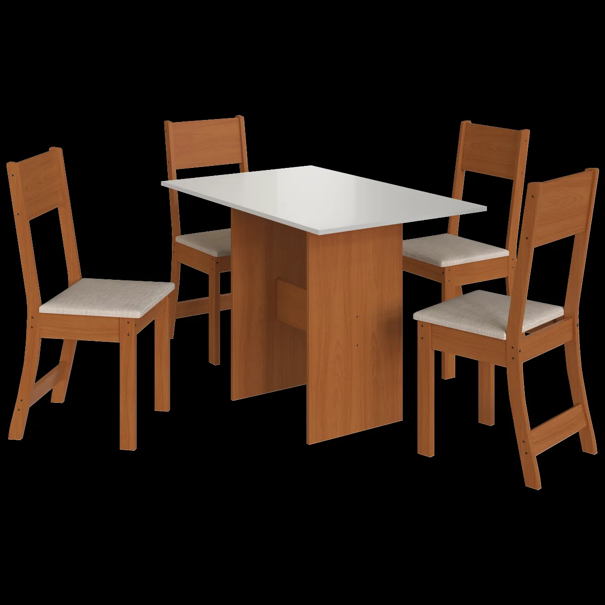 Mesa Karla 108 Freijó/Off White com 4 Cadeiras Linho Bege – INDÉKES