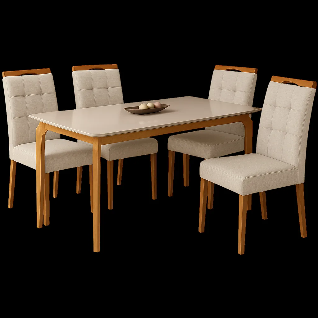 Mesa Alegra 120 Cinamomo/Off White com 4 Cadeiras Sophia Linho Bege 200 – JCM MOVELARIA + WM DECOR