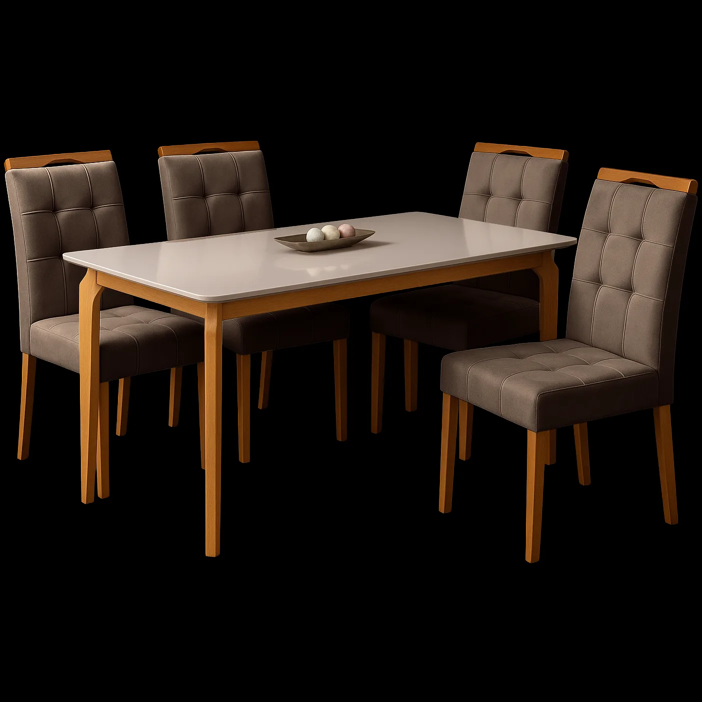 Mesa Alegra 120 Cinamomo/Off White com 4 Cadeiras Sophia Veludo Marrom – JCM MOVELARIA + WM DECOR
