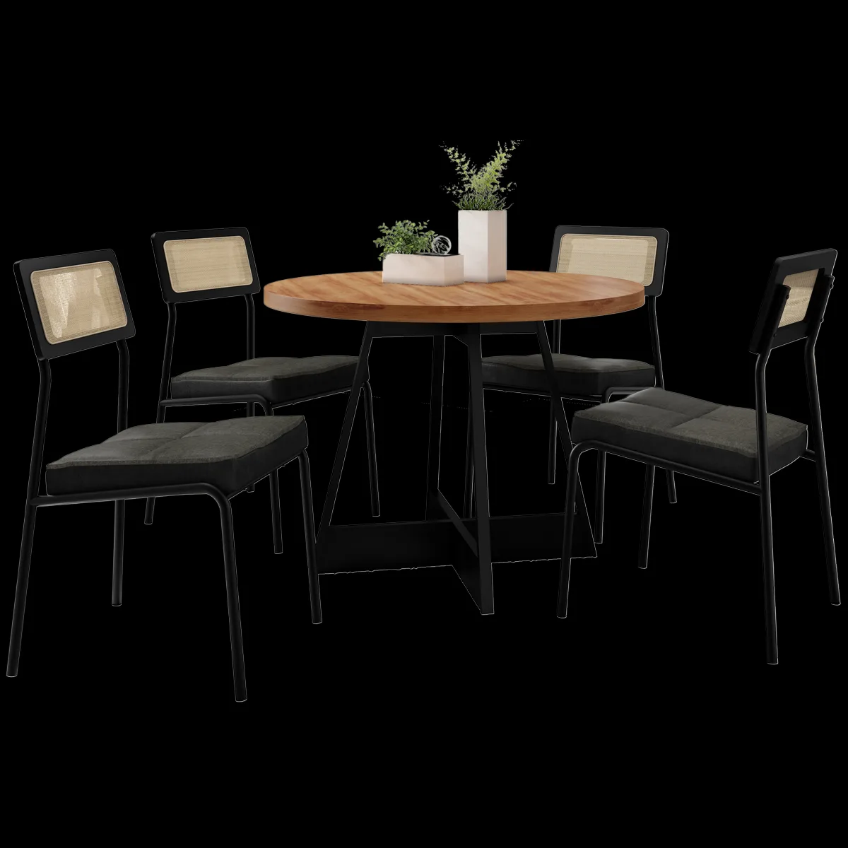 Mesa Átria 1594 Redonda 100 Preto/Nogal com 4 Cadeiras Lux 1741 Preto/Linho Grafite/Corino Preto – CARRARO MÓVEIS