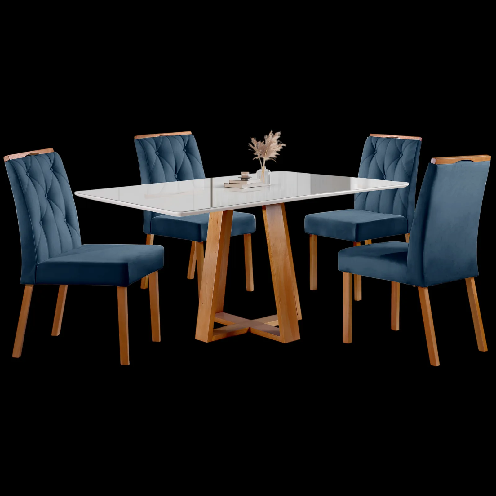 Mesa Ayres 120 Mel/Off White com 4 Cadeiras Yasmim Veludo Azul – VIEIRA DECOR