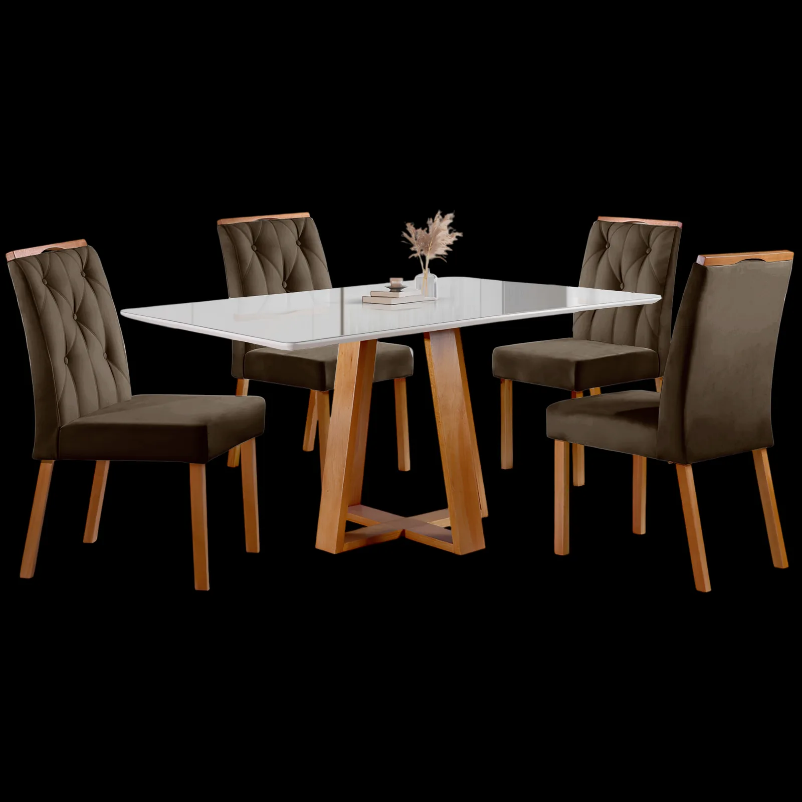 Mesa Ayres 120 Mel/Off White com 4 Cadeiras Yasmim Veludo Marrom – VIEIRA DECOR