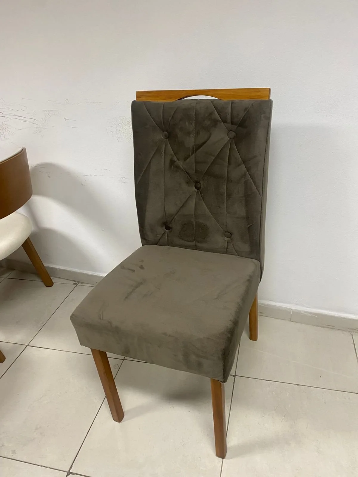 – Assento e encosto em veludo marrom