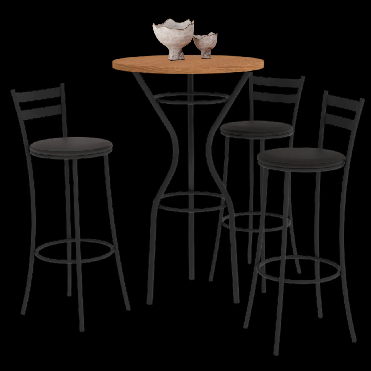 Mesa Bistrô Dublin com 3 Banquetas Jade CM1029(M087/TA69/3B699)Preto/Cinamomo – KAPPESBERG