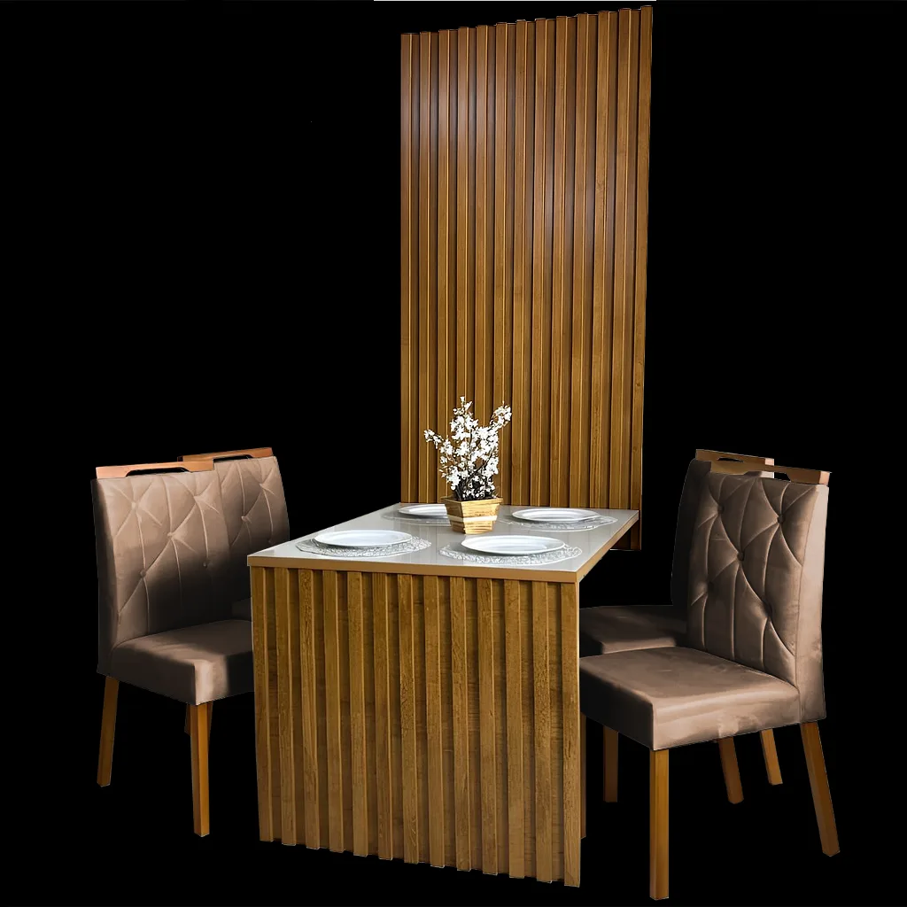 Mesa Cancun 120 Cinamomo/Off White com 4 Cadeiras Yasmim Veludo Marrom – CEL MÓVEIS + KM DECOR