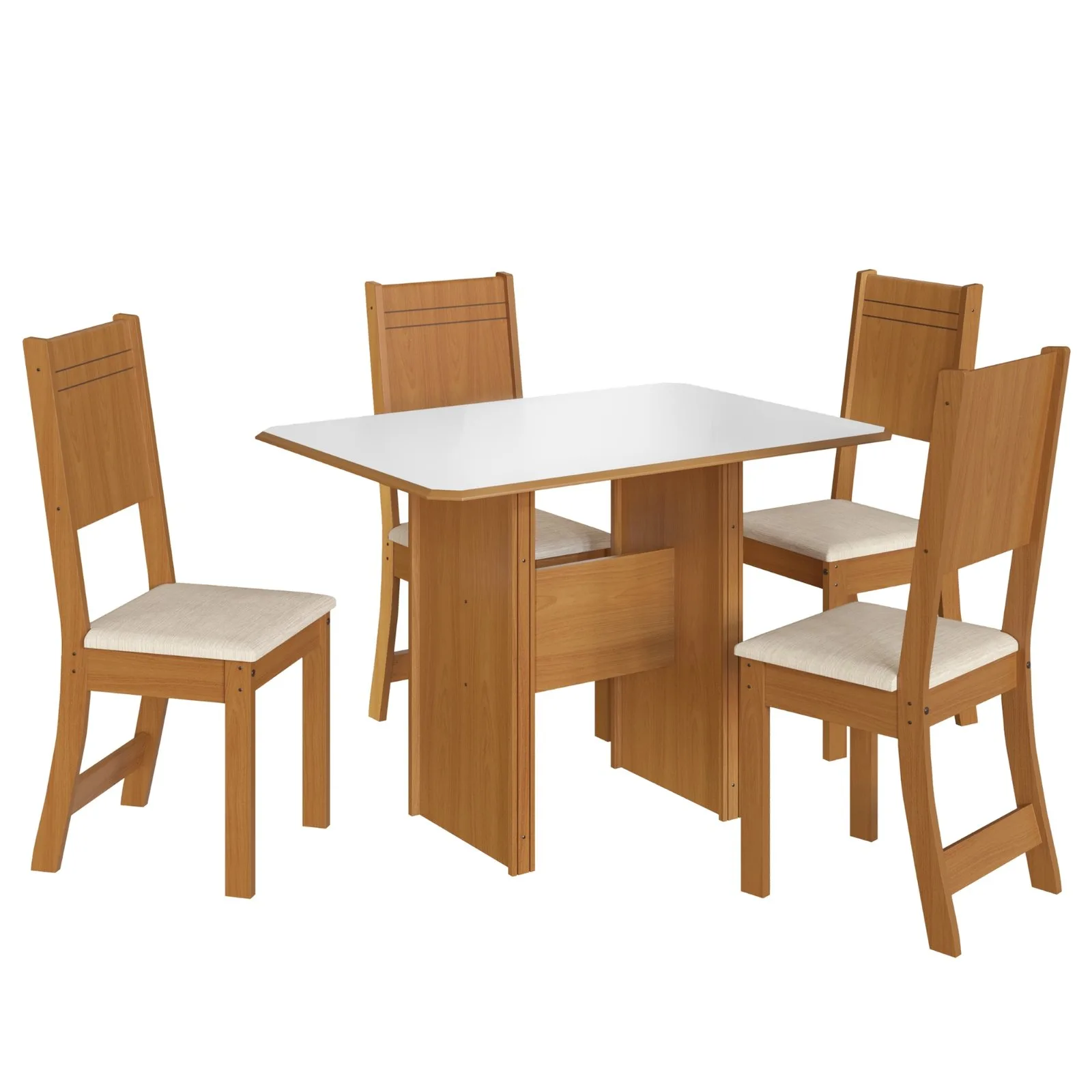 Mesa Évora 110 Freijó/Off White com 4 Cadeiras Linho Bege – INDÉKES