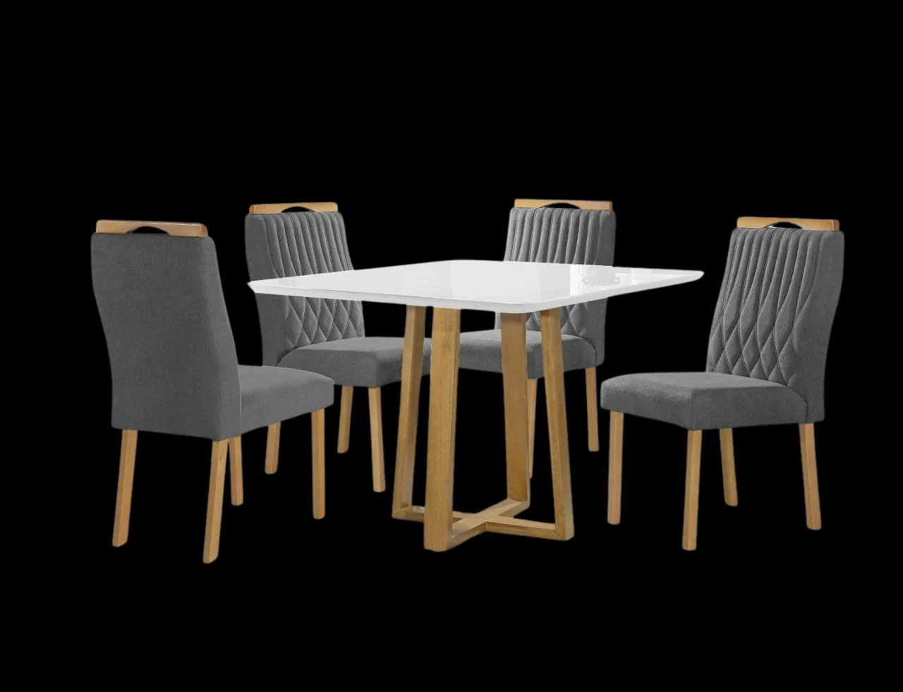 Mesa Pedro 90 Mel/Off White com 4 Cadeiras Gênova Veludo Grafite – ART ASSENTOS