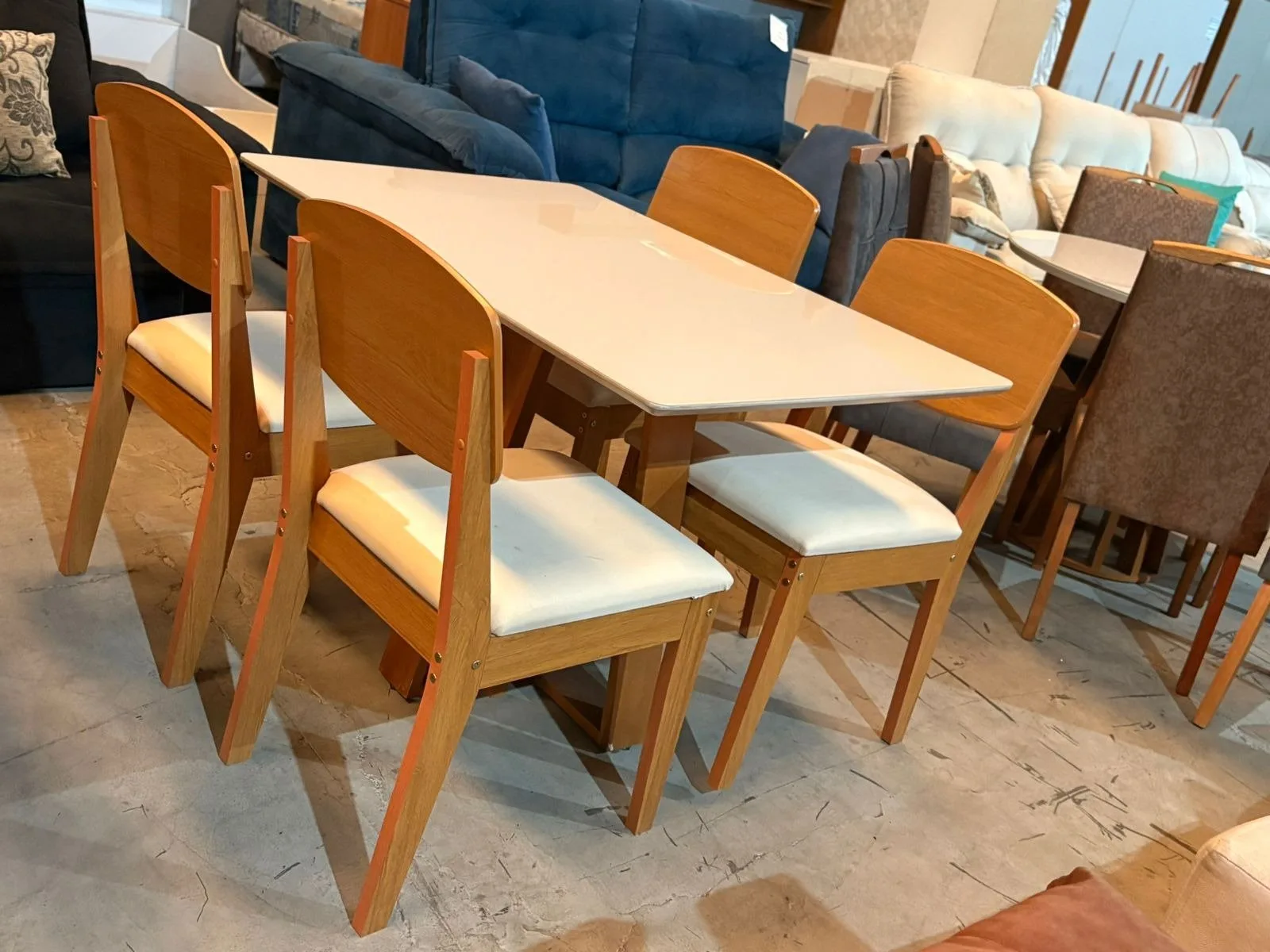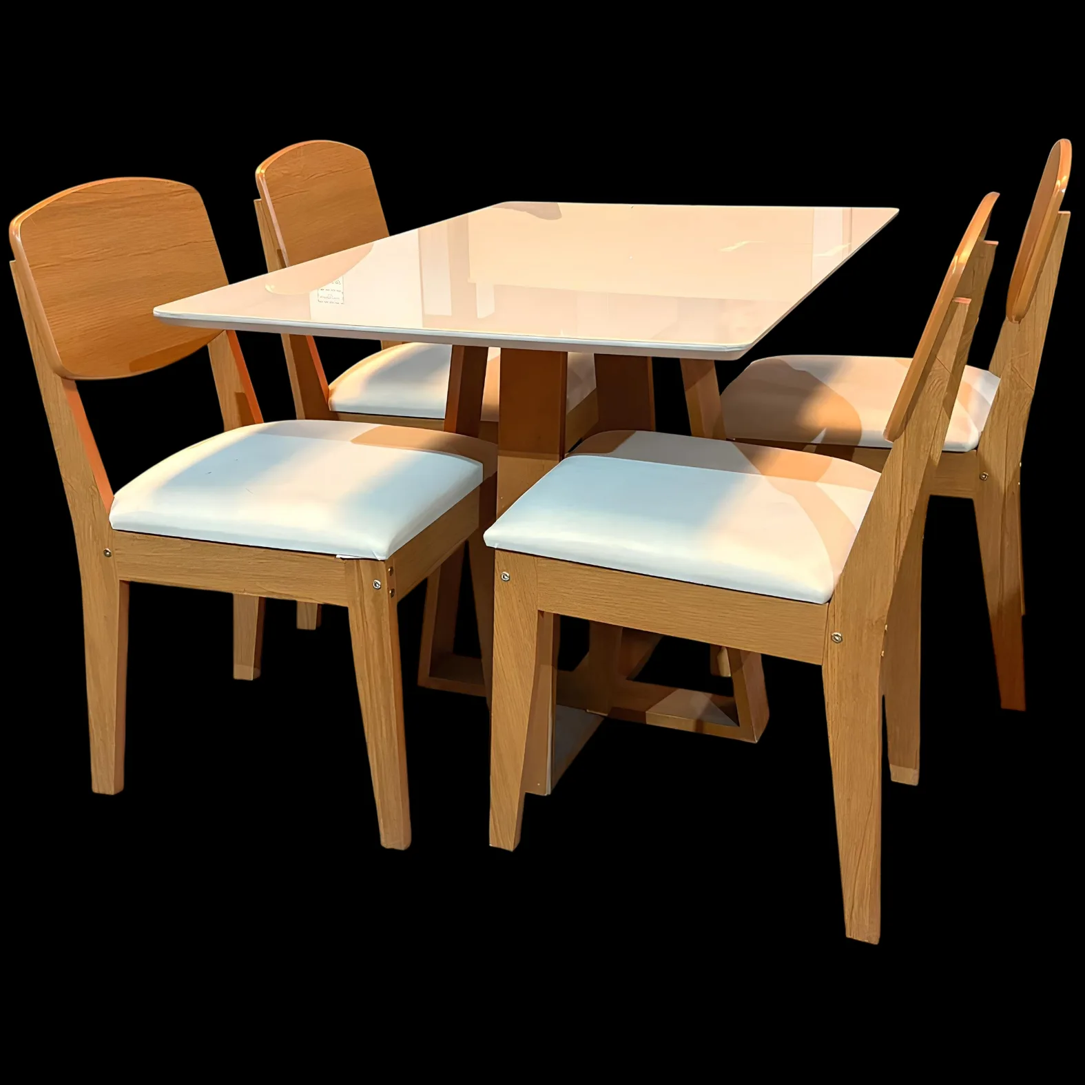 Mesa Pedro 90 Mel/Off White com 4 Cadeiras Havana Veludo Creme – ART ASSENTOS + RUFATO