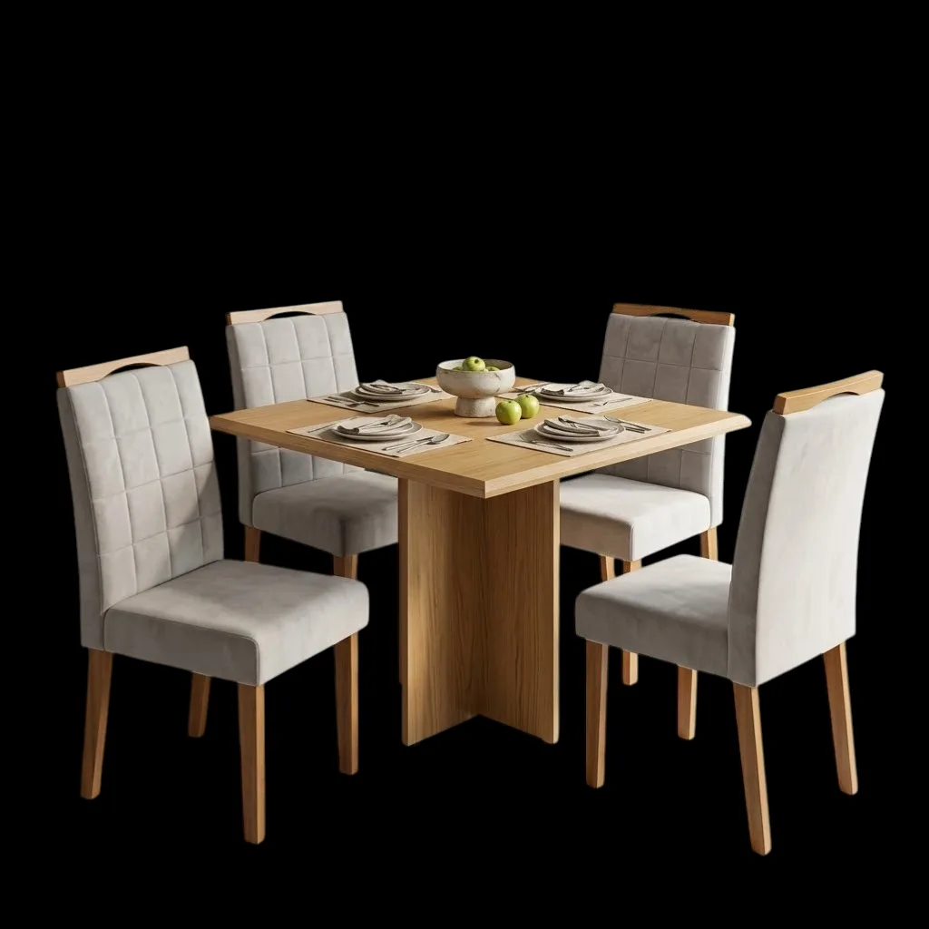 Mesa Pérola 90 Imbuia Mel (Tampo Viena s/vidro) com 4 Cadeiras Las Vegas Veludo Bege 01 – CARVALHO DECOR + OURO DECOR