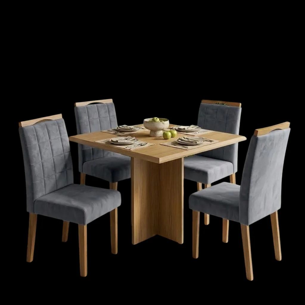 Mesa Pérola 90 Imbuia Mel (Tampo Viena s/vidro) com 4 Cadeiras Las Vegas Veludo Cinza Grafite 10 – CARVALHO DECOR + OUR