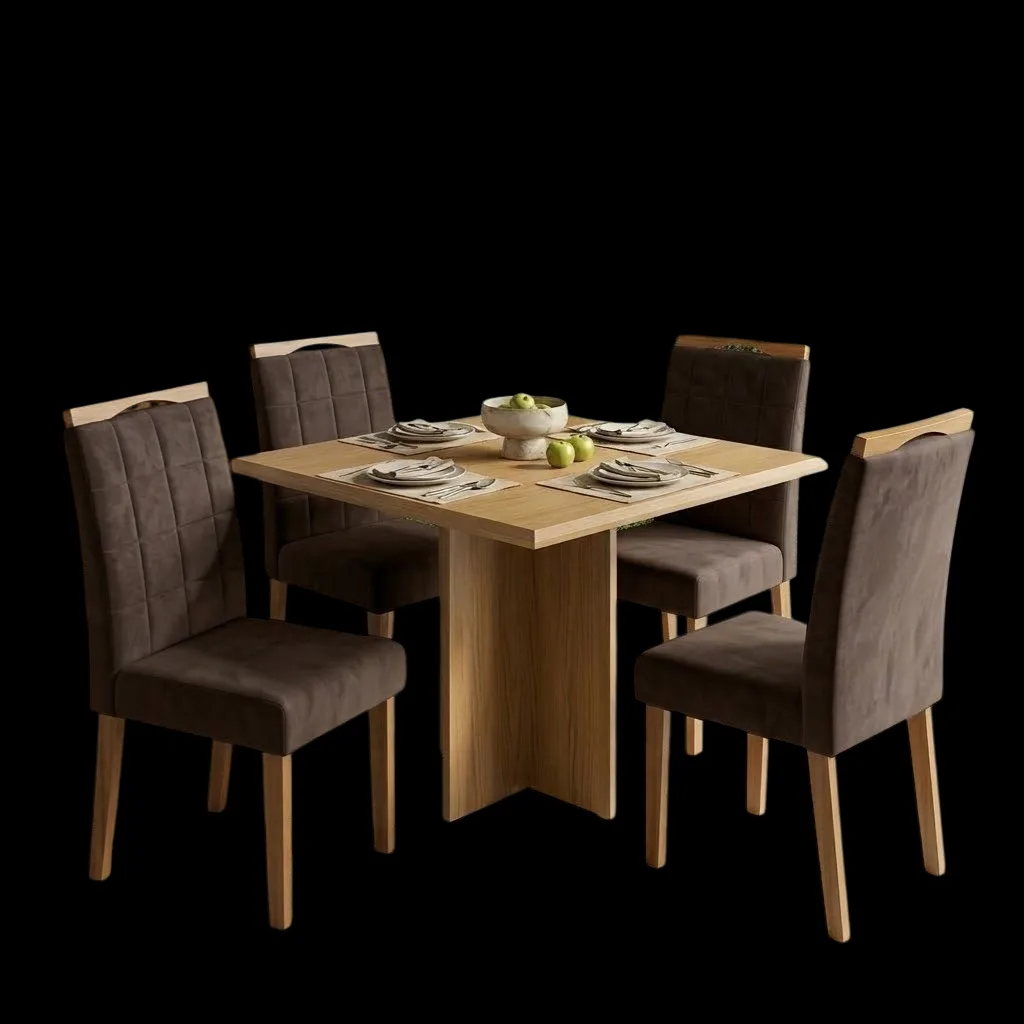 Mesa Pérola 90 Imbuia Mel (Tampo Viena s/vidro) com 4 Cadeiras Las Vegas Veludo Marrom 17 – CARVALHO DECOR + OURO DECOR