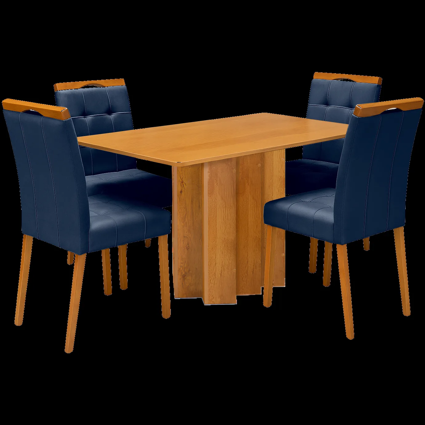 Mesa Recife 120 Cinamomo Laminado com 4 Cadeiras Sophia Veludo Azul – CEL MÓVEIS + WM DECOR