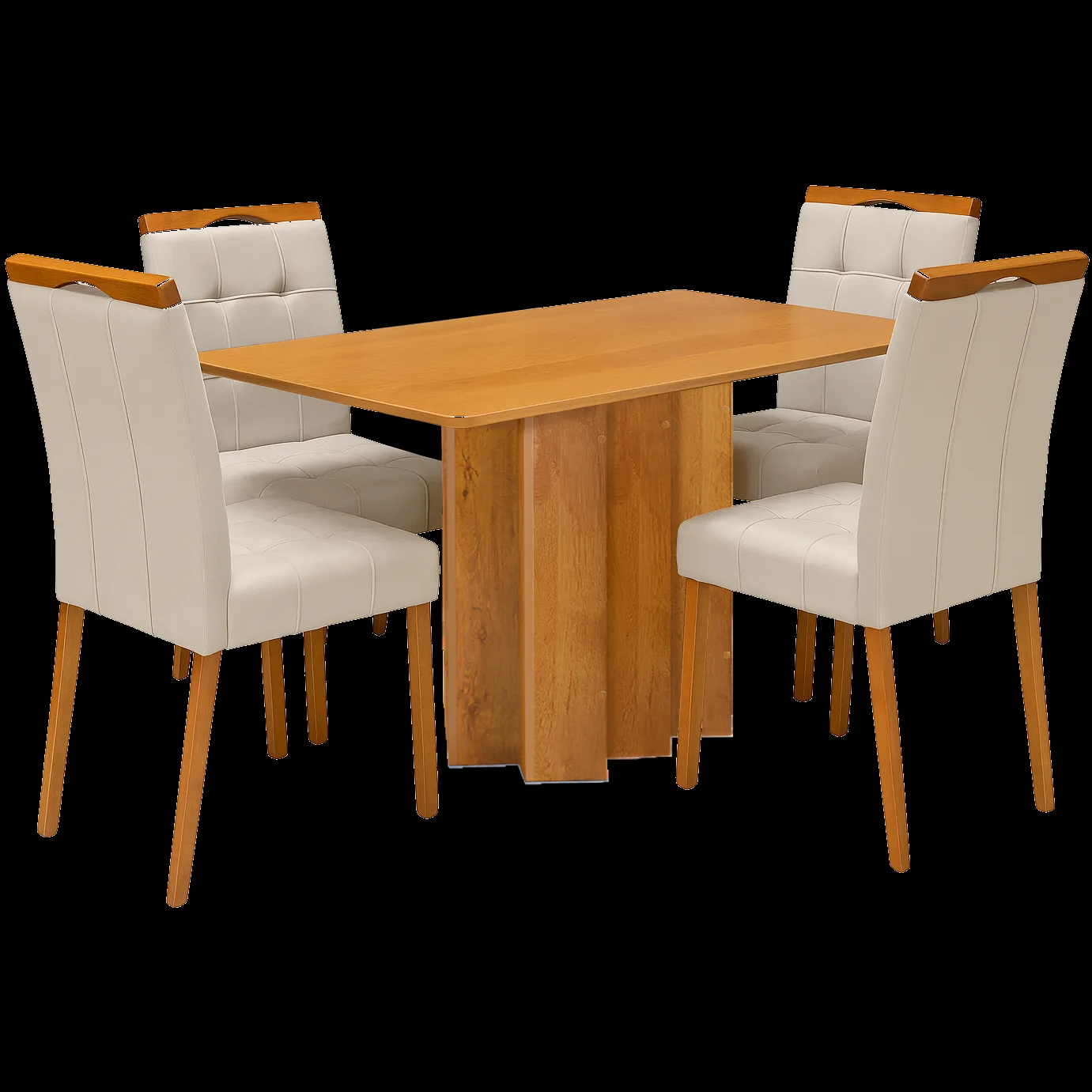 Mesa Recife 120 Cinamomo Laminado com 4 Cadeiras Sophia Veludo Bege – CEL MÓVEIS + WM DECOR