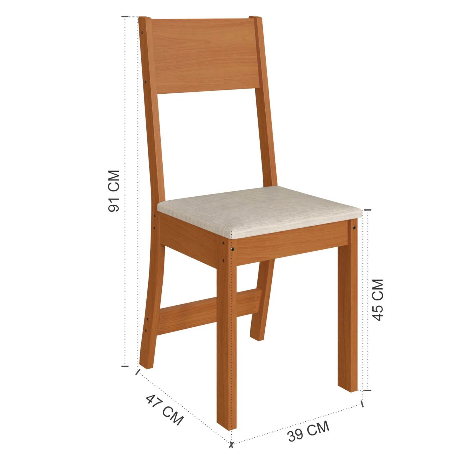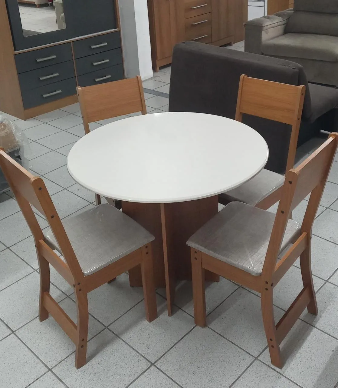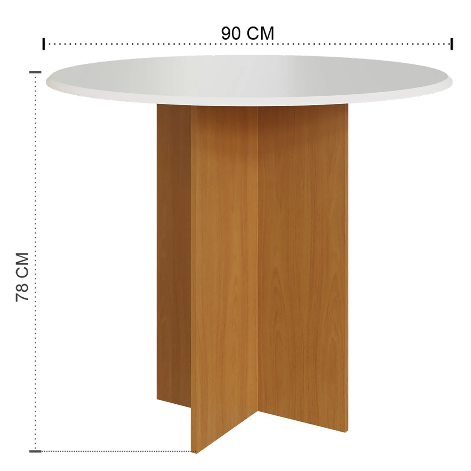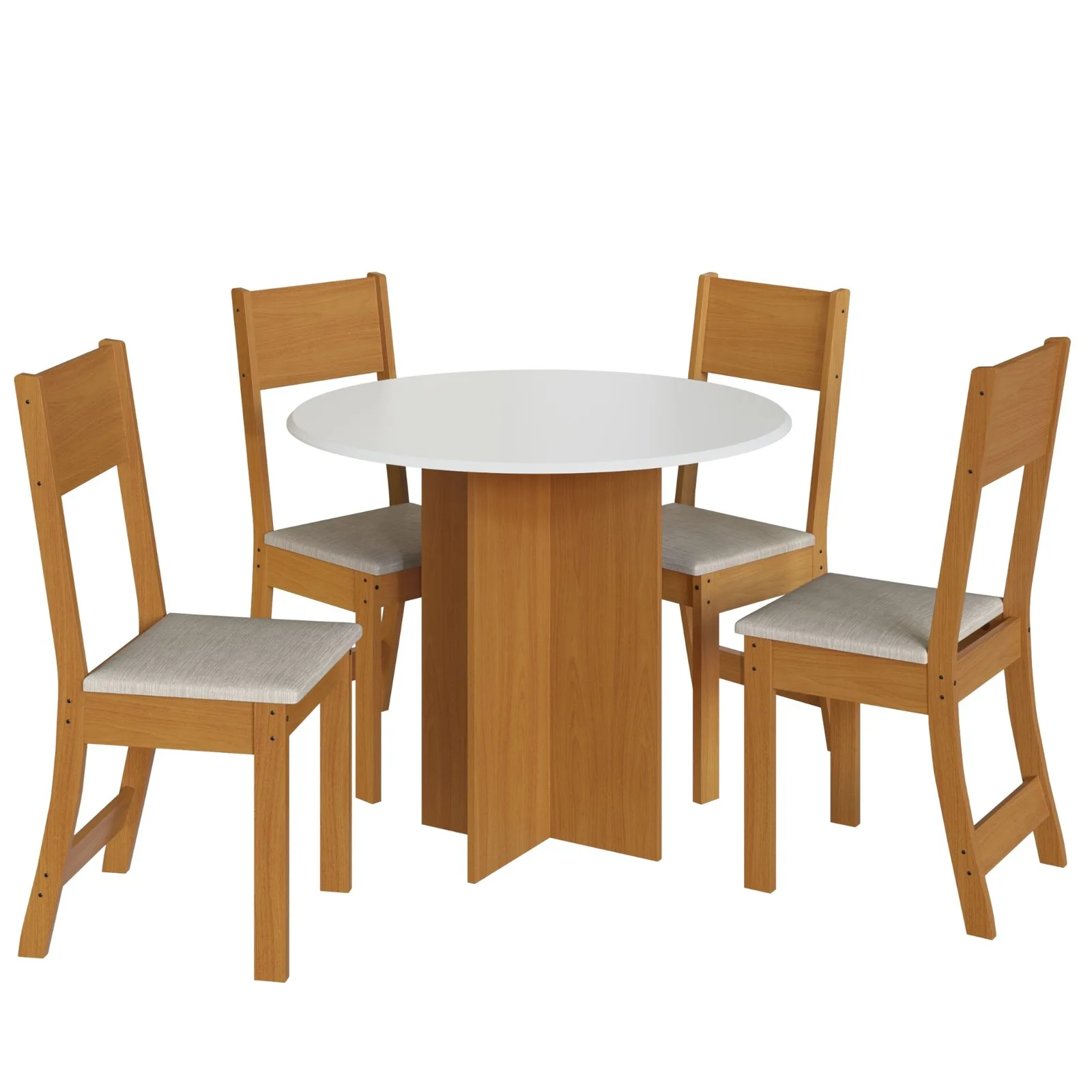 Mesa Redonda Alice 90 Freijó/Off White com 4 Cadeiras Linho Bege – INDÉKES