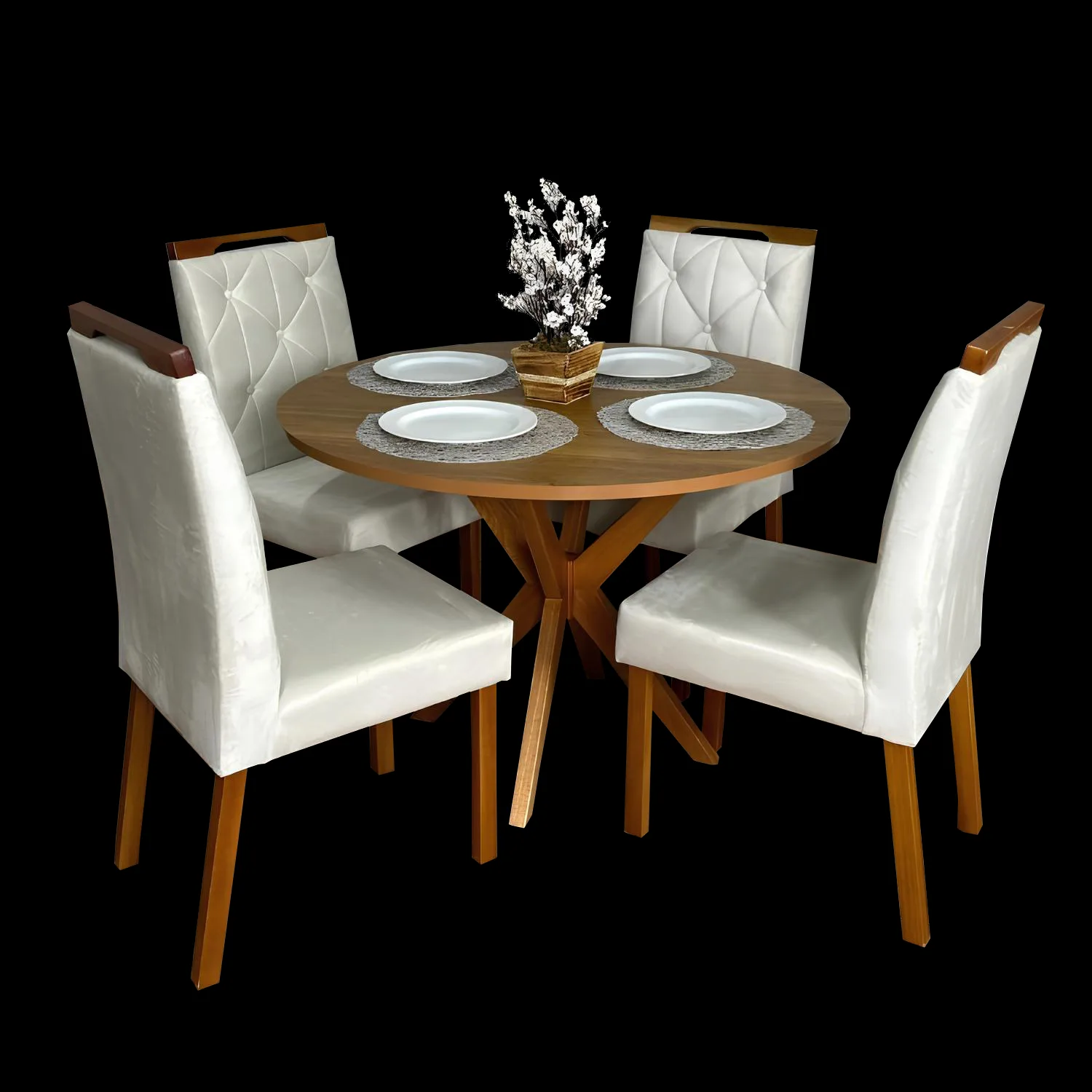 Mesa Redonda Simpatia 108 Cinamono com 4 Cadeiras Yasmim Veludo Bege – JCM MOVELARIA + KM DECOR