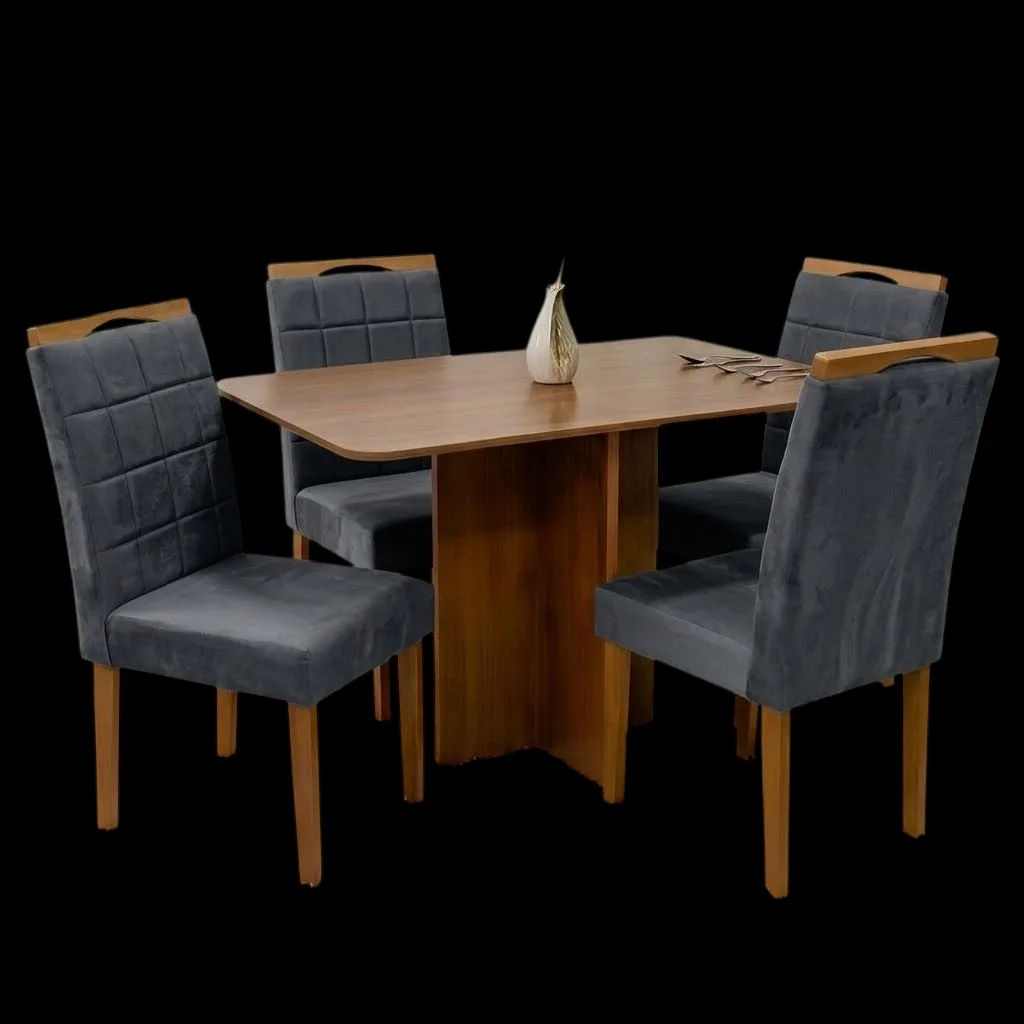 Mesa Salinas 120 (Tampo Londres s/vidro) Cinamomo/Off White com 4 Cadeiras Las Vegas Veludo Cinza Grafite 10 – CEL MÓVEIS + OURO DECOR