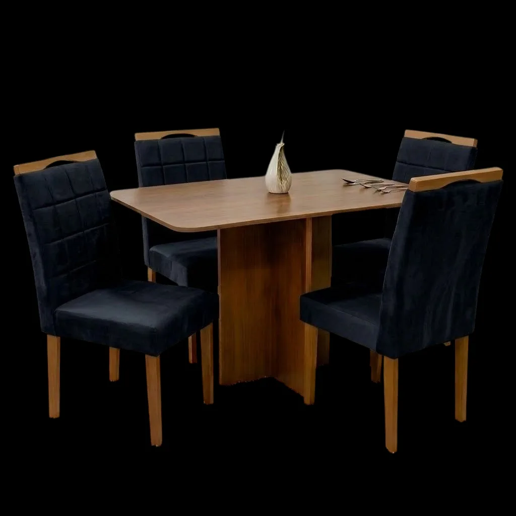Mesa Salinas 120 (Tampo Londres s/vidro) Cinamomo/Off White com 4 Cadeiras Las Vegas Veludo Preto 13 – CEL MÓVEIS + OURO DECOR