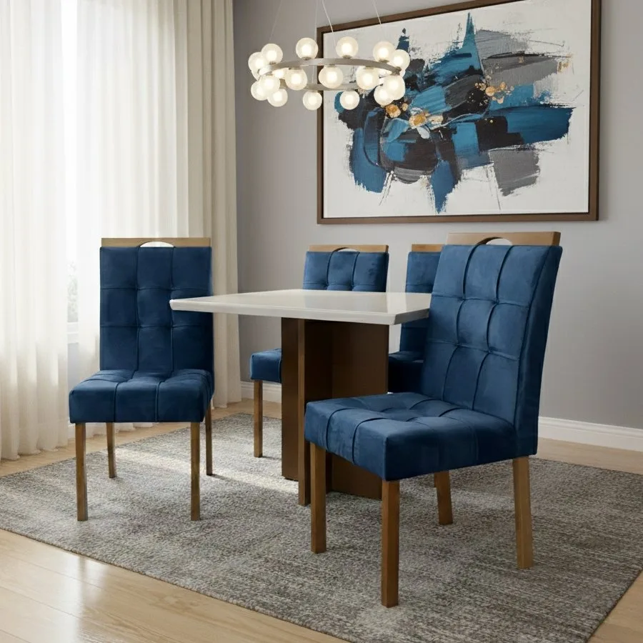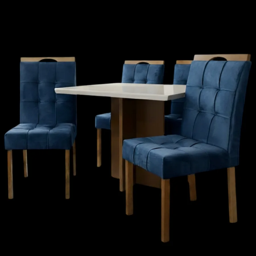 Mesa Salinas/Helô/Los Angeles 90 Cinamomo/Off White com 4 Cadeiras Sophia Veludo Azul – CEL MÓVEIS + WM DECOR