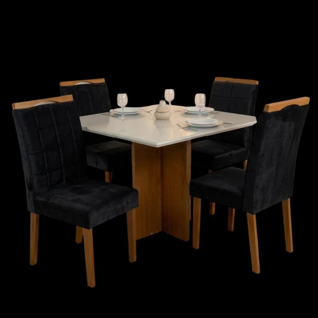 Mesa Salinas 90 (Tampo Dakota c/vidro) Cinamomo/Off White com 4 Cadeiras Las Vegas Veludo Preto 13 – CEL MÓVEIS + OURO DECOR