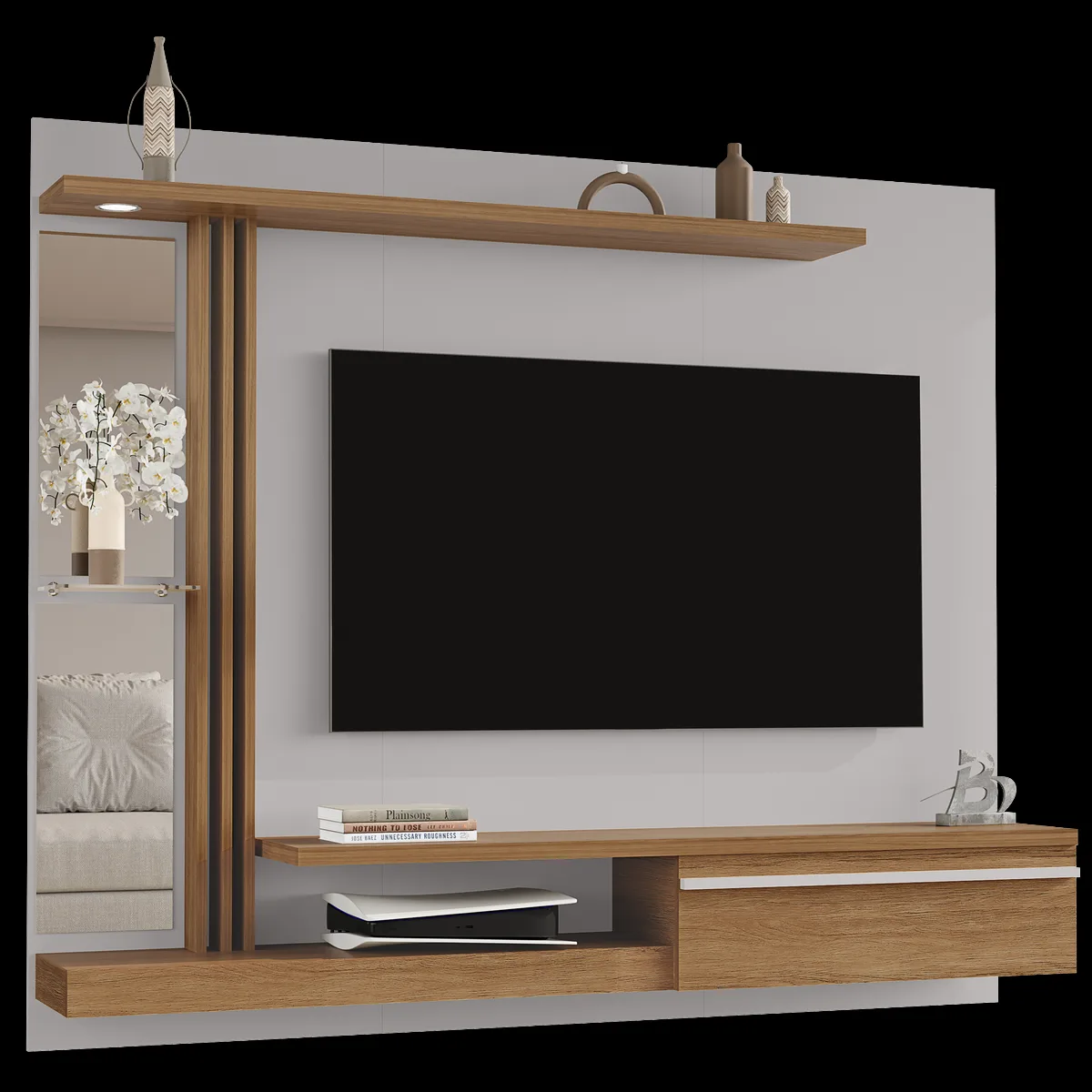 – Espaço para TV (LxP): 108 cm x 128 cm