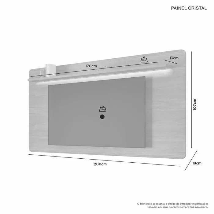 – Espaço para TV: 200 cm x 90 cm (LxA)