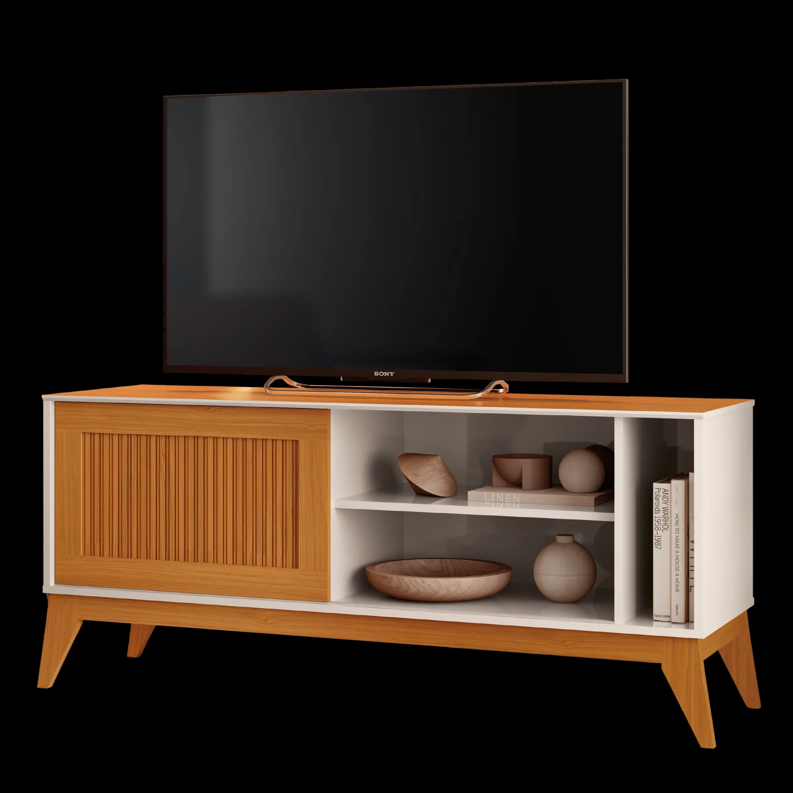 Rack até 55″ Aruba Off White/Cedro – EDN MÓVEIS